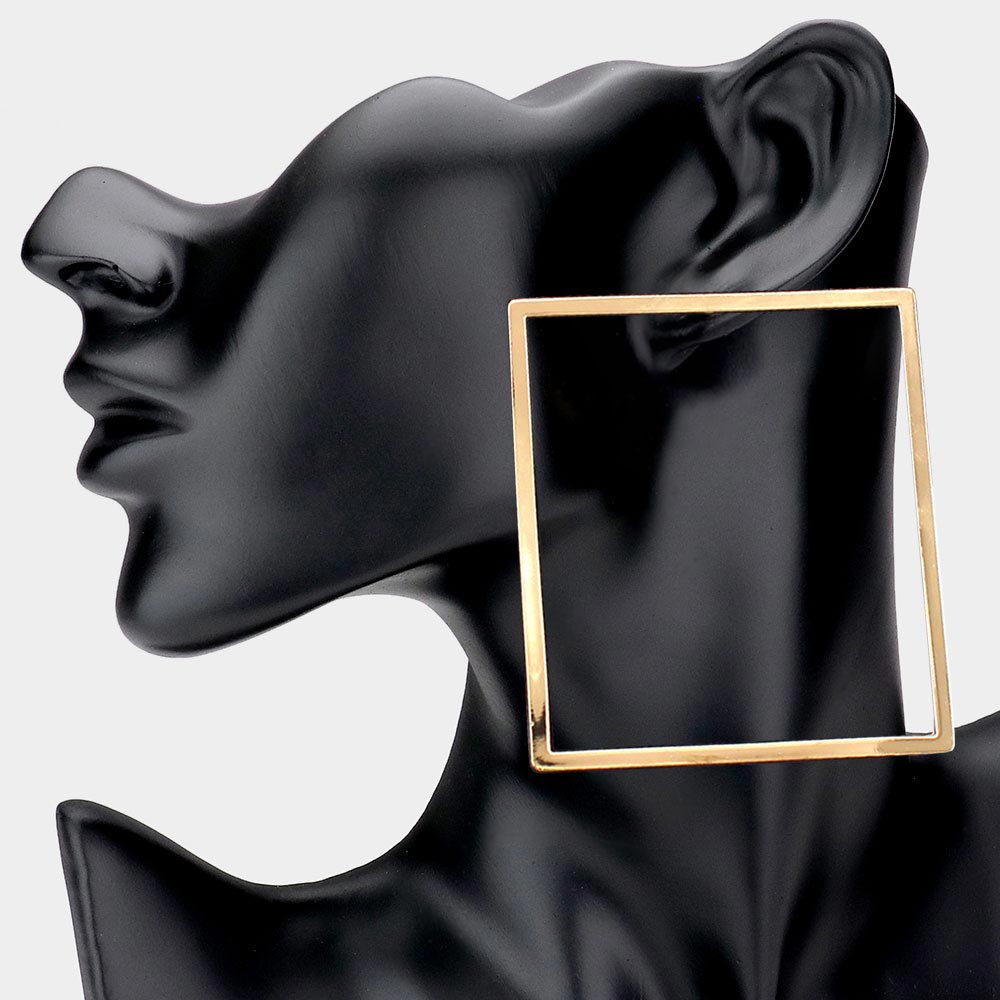 Details • Size : 2.75" X 3.25" • Post Back • Make a bold impression with these geometric square hoop statement earrings featuring a sleek open-frame design for a clean, modern look. Lightweight with high visual impact, they effortlessly elevate casual outfits or add edge to evening ensembles, perfect for trend setters seeking standout style. • Lead and Nickel Compliant