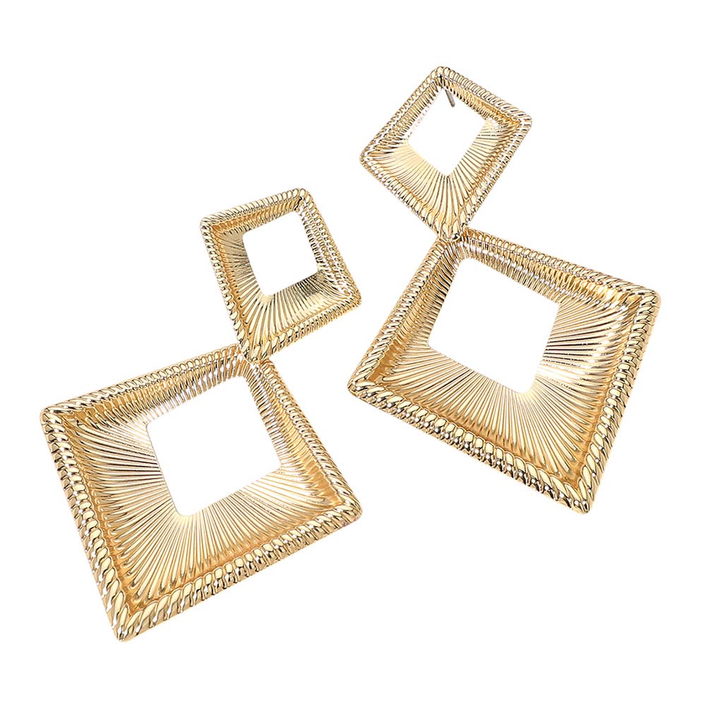 Bold Textured Metal Geometric Open Square Drop Statement Earrings