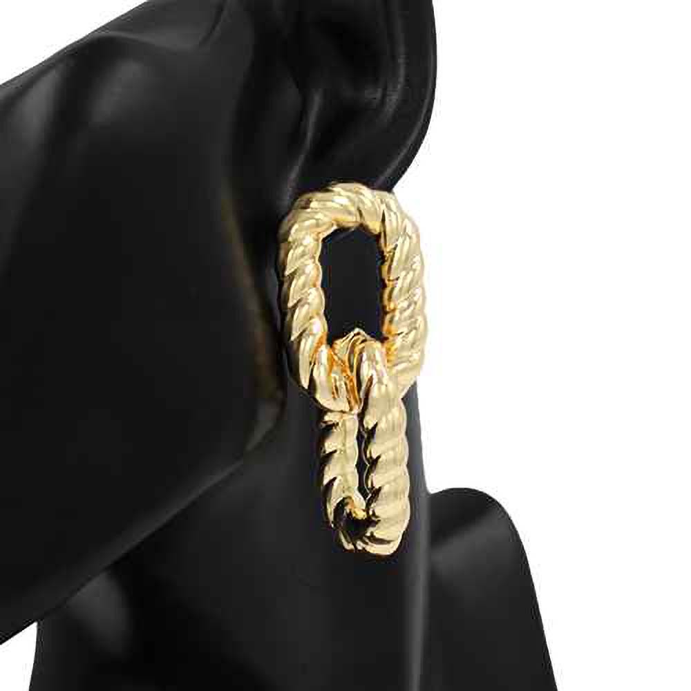 Details • Size : 1" X 2.3" • Post Back • These statement drop earrings feature a bold twisted link design with sculptural texture and fluid movement. Crafted to elevate everyday outfits or evening looks, they offer a modern statement silhouette that pairs effortlessly with minimal styles, resort wear, and contemporary fashion collections. Ideal for boutiques seeking eye-catching accessories with strong visual impact and versatile styling appeal. • Lead and Nickel Compliant