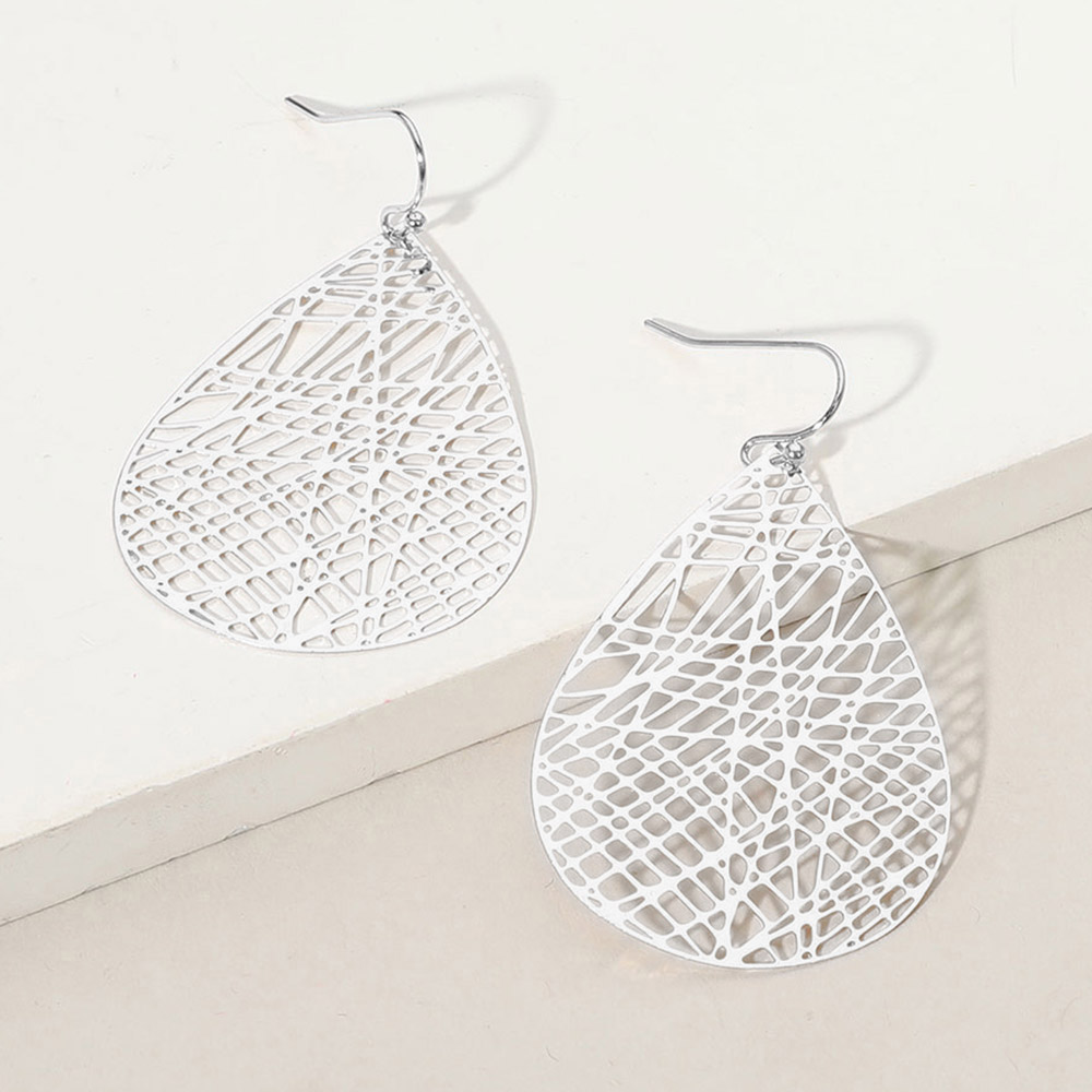 Brass Matte Metal Filigree Teardrop Dangle Earrings