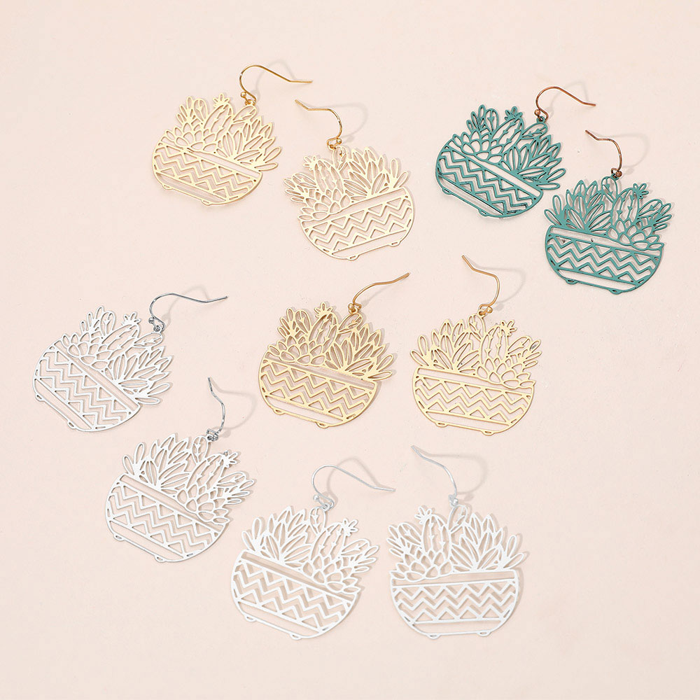 Brass Metal Botanical Planter Cutout Dangle Earrings