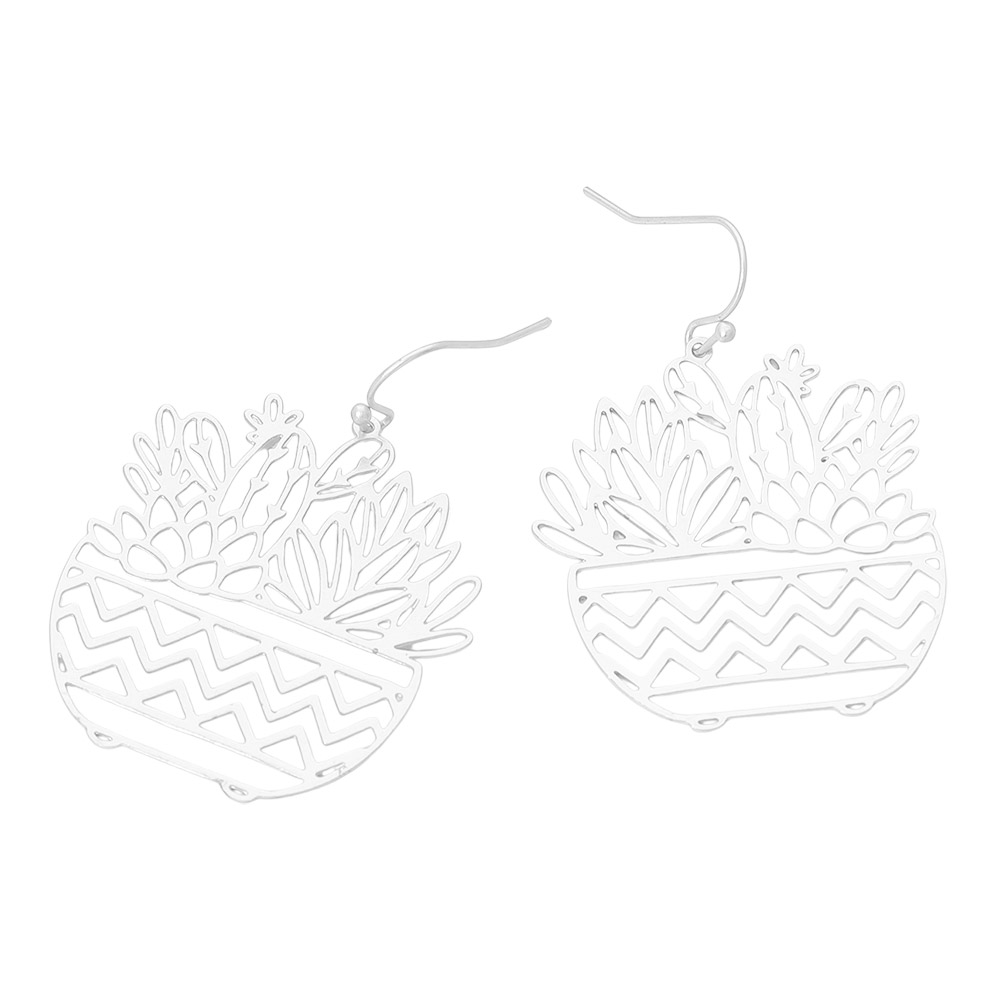 • Celebrate nature-inspired elegance with these botanical planter cutout dangle earrings. Featuring a detailed plant motif within a chic geometric pot design, they blend artistry and modern charm. Perfect for adding a playful yet refined accent to both everyday and dressy ensembles.