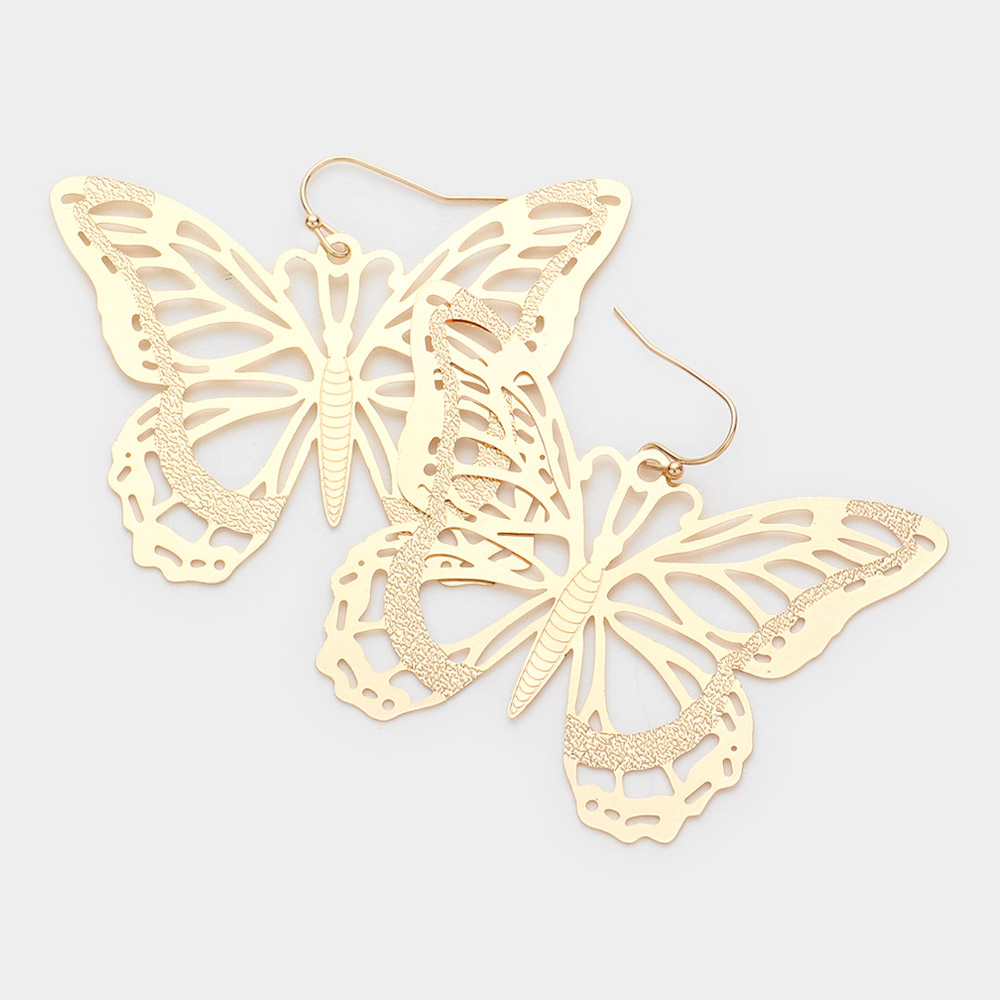 Rhinestone Embellished Butterfly Teardrop Stone Link Dangle Evening Earrings