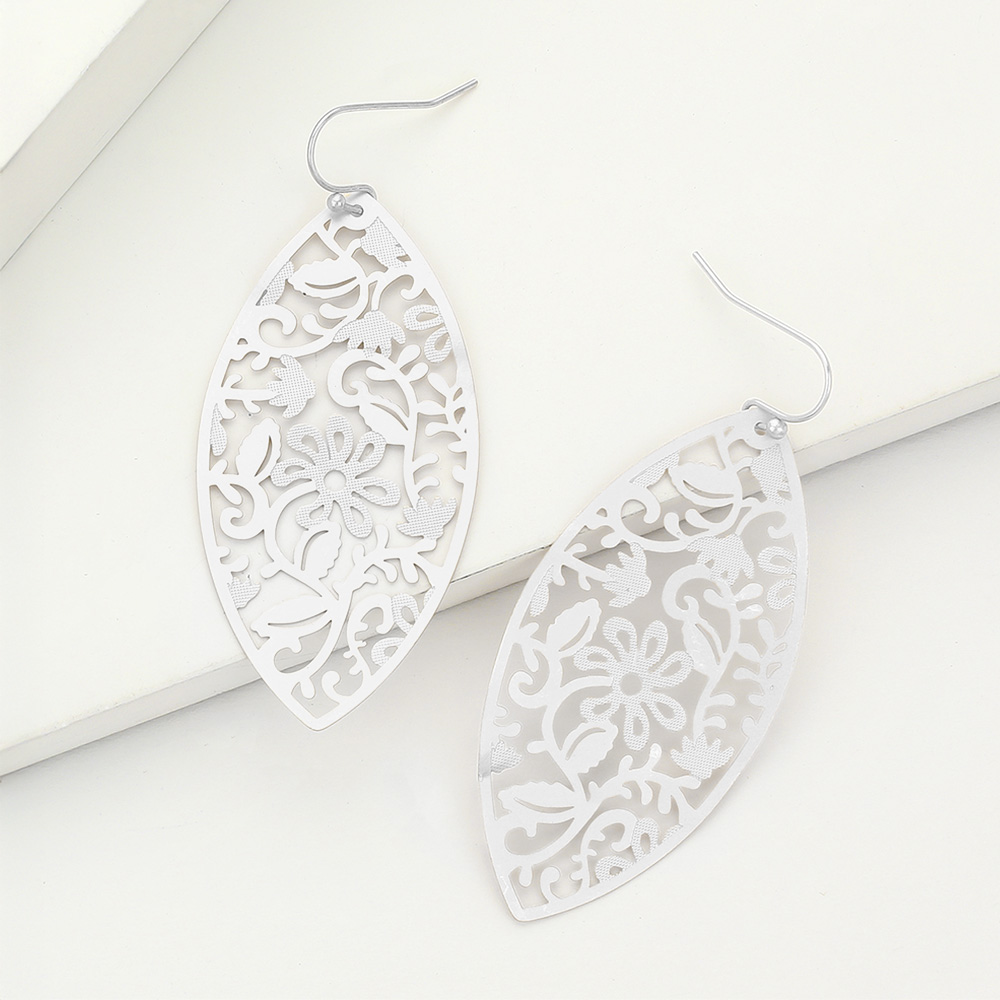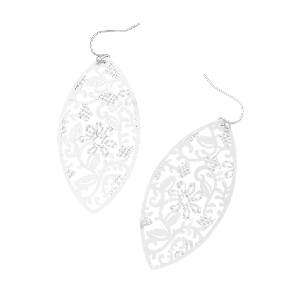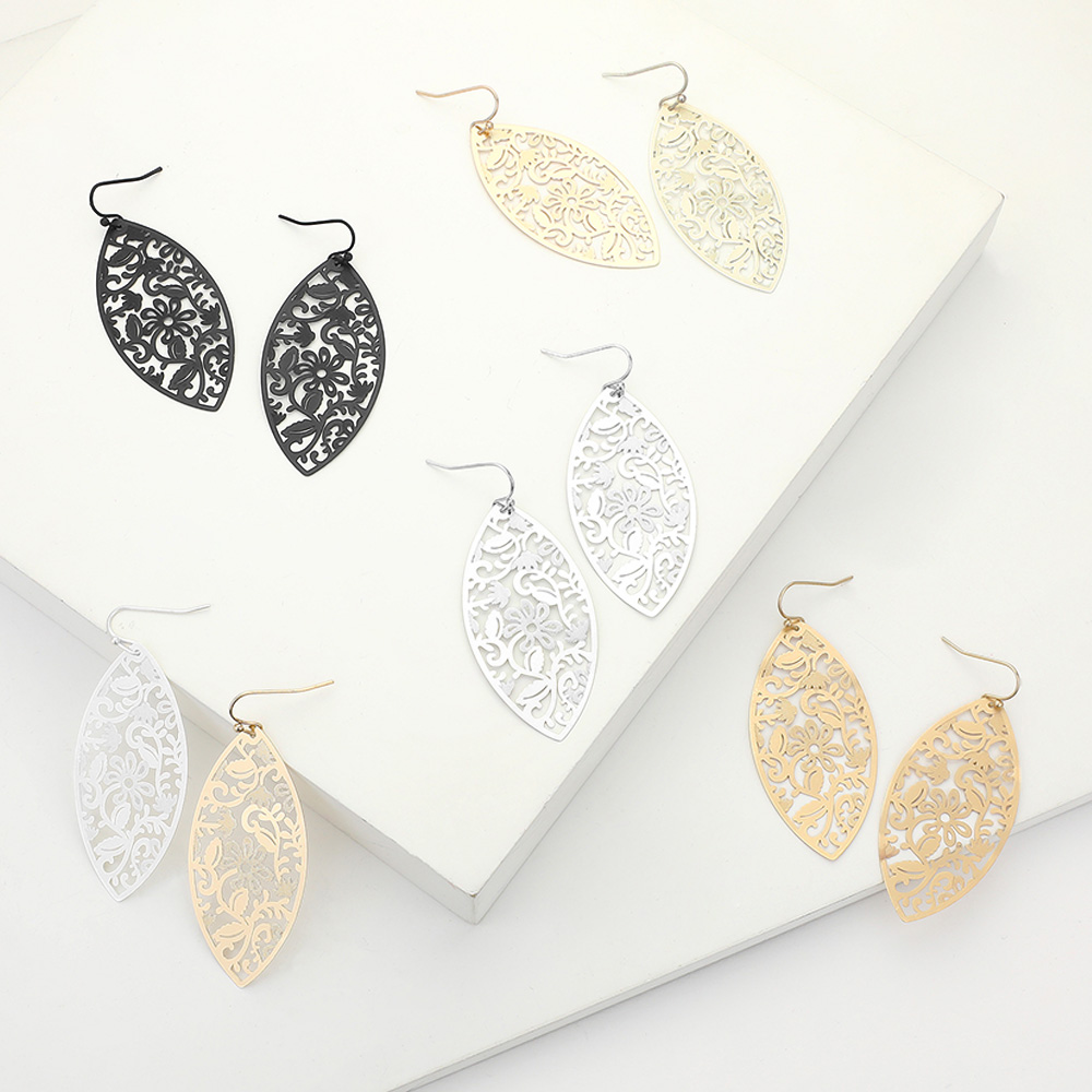 Metal Filigree Leaf Dangle Earrings