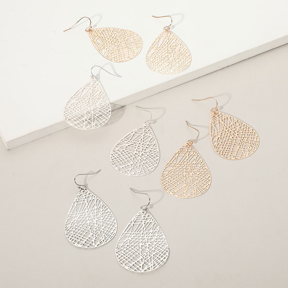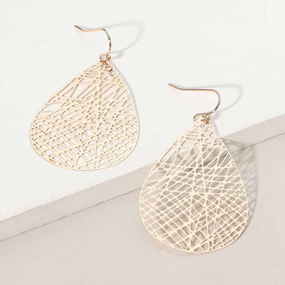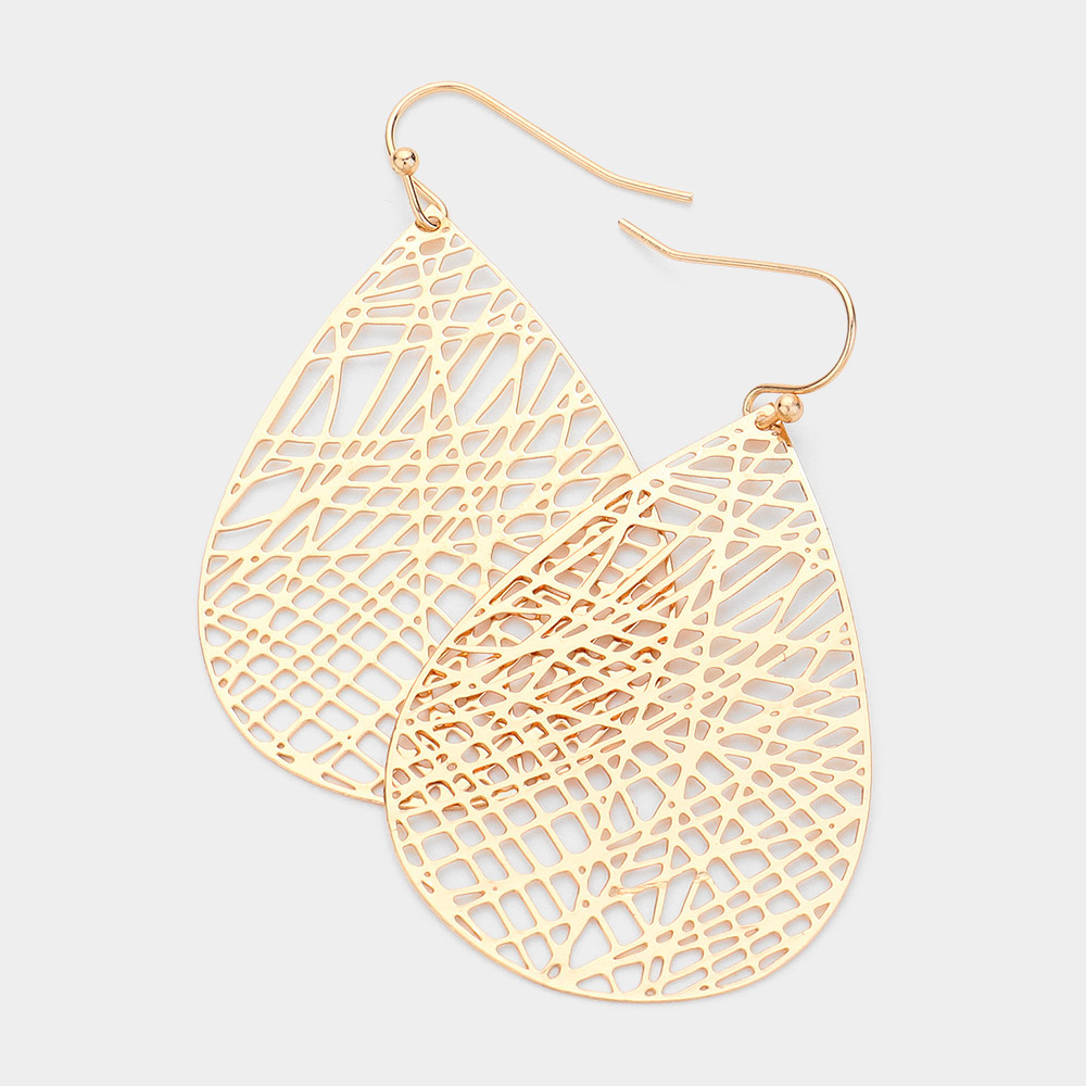 Brass Matte Metal Filigree Teardrop Dangle Earrings