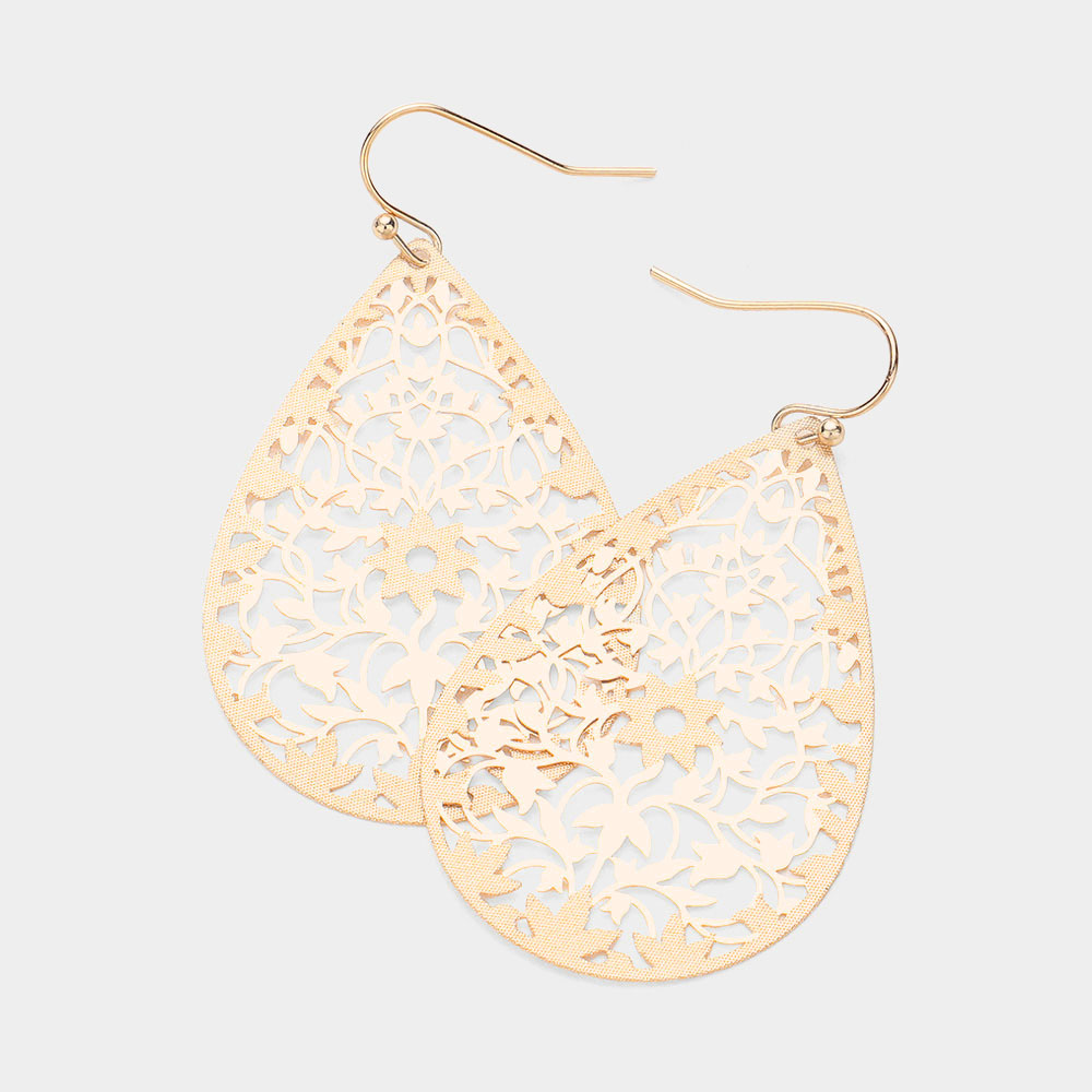 Brass Metal Filigree Abstract Oval Dangle Earrings
