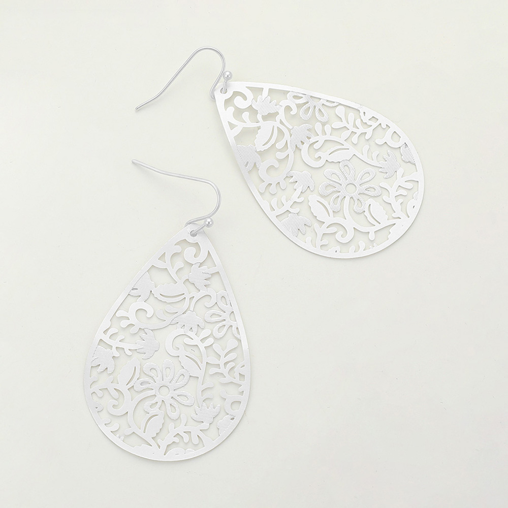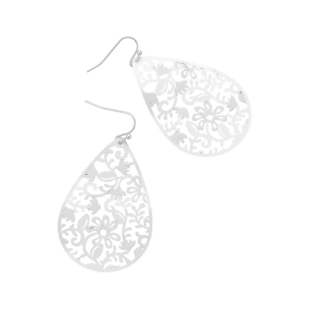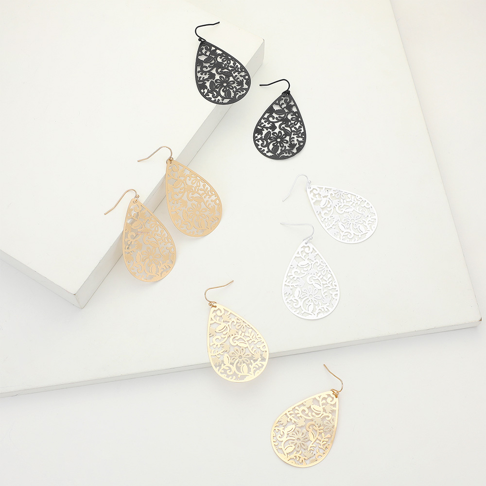 Teardrop Stone Embellished Metal Abstract Filigree Dangle Earrings