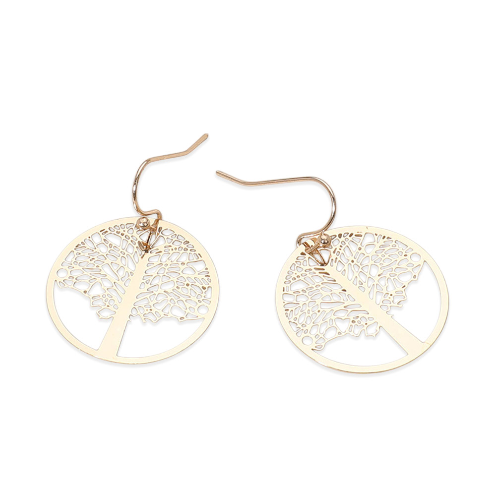 Details • Size: 1" X 1.25" • Fish Hook Back • Embrace natural elegance with these Tree of Life cutout circle earrings. Featuring detailed openwork craftsmanship, they symbolize growth and harmony while adding a refined touch to any look. Lightweight and versatile, they’re perfect for both everyday wear and meaningful gifting. • Lead and Nickel Compliant • Brass