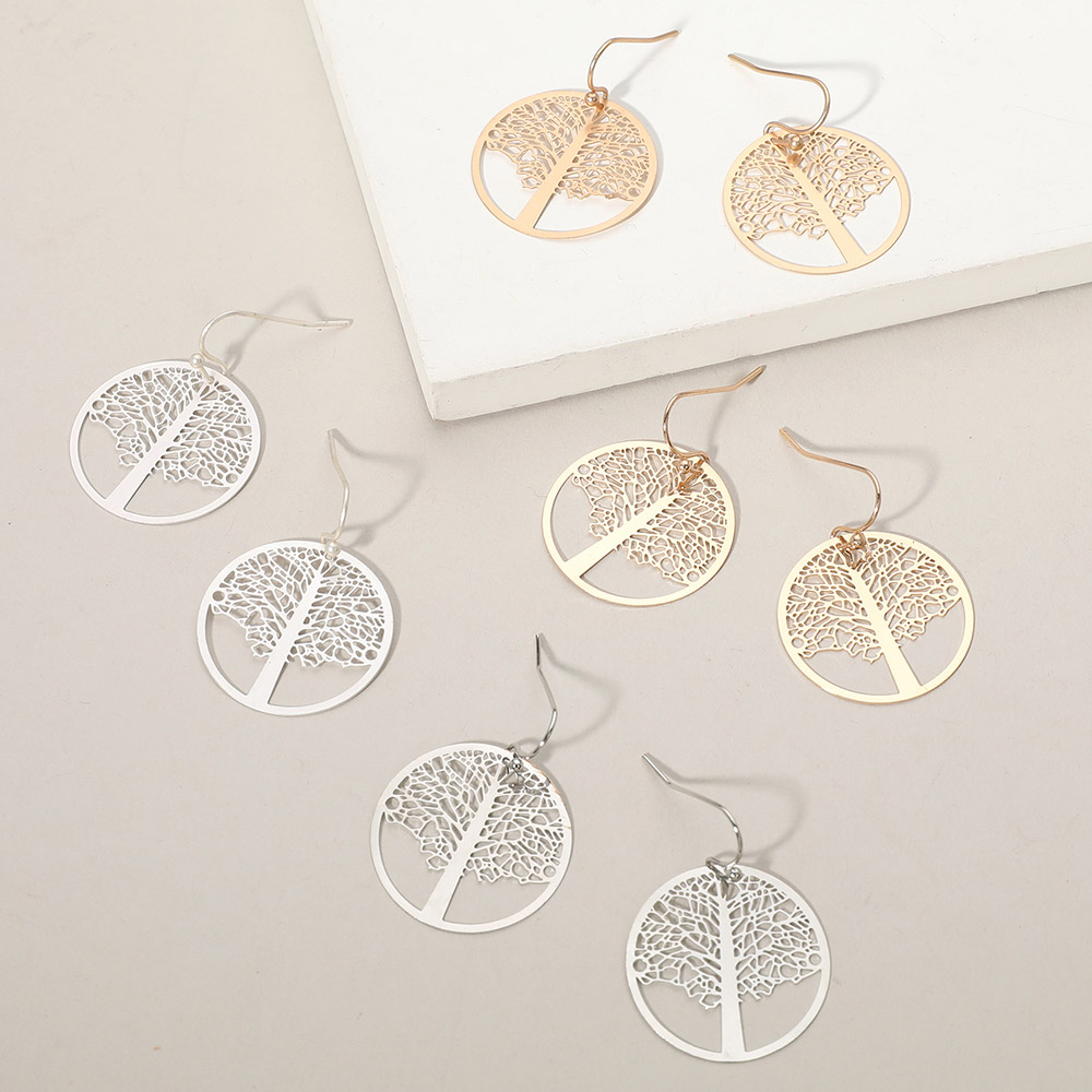 Details • Size: 1" X 1.25" • Fish Hook Back • Embrace natural elegance with these Tree of Life cutout circle earrings. Featuring detailed openwork craftsmanship, they symbolize growth and harmony while adding a refined touch to any look. Lightweight and versatile, they’re perfect for both everyday wear and meaningful gifting. • Lead and Nickel Compliant • Brass