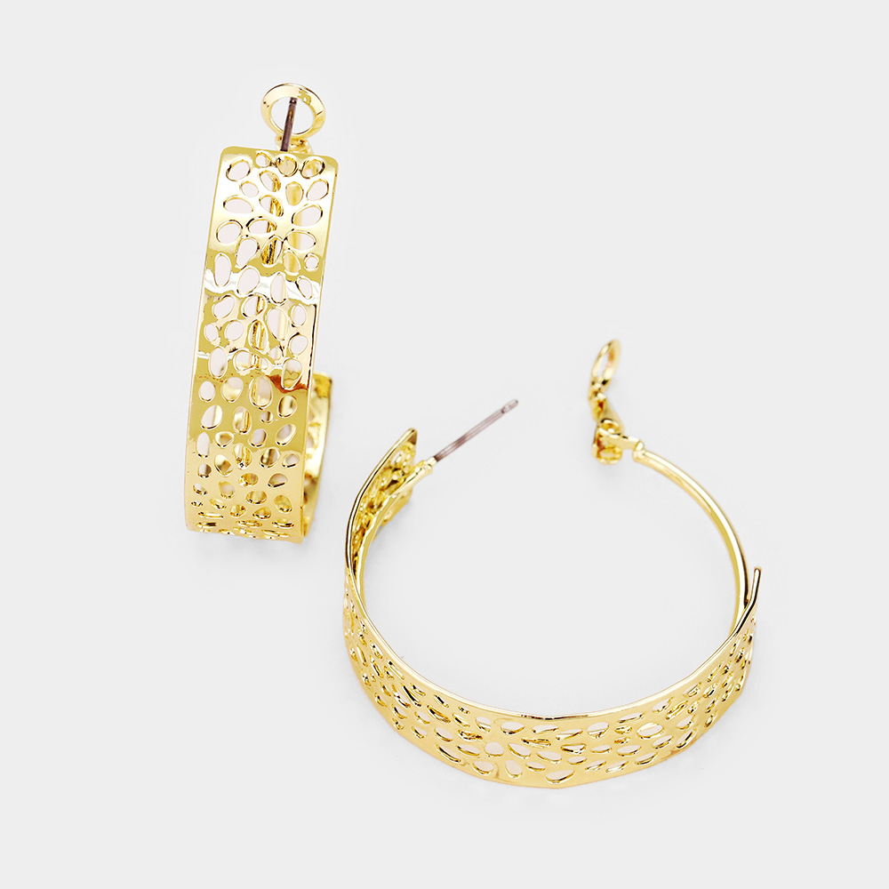 Oversized Metal Bamboo Pin Catch Hoop Earrings