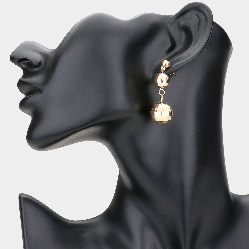 Double Disco Ball Drop Down Metal Earrings