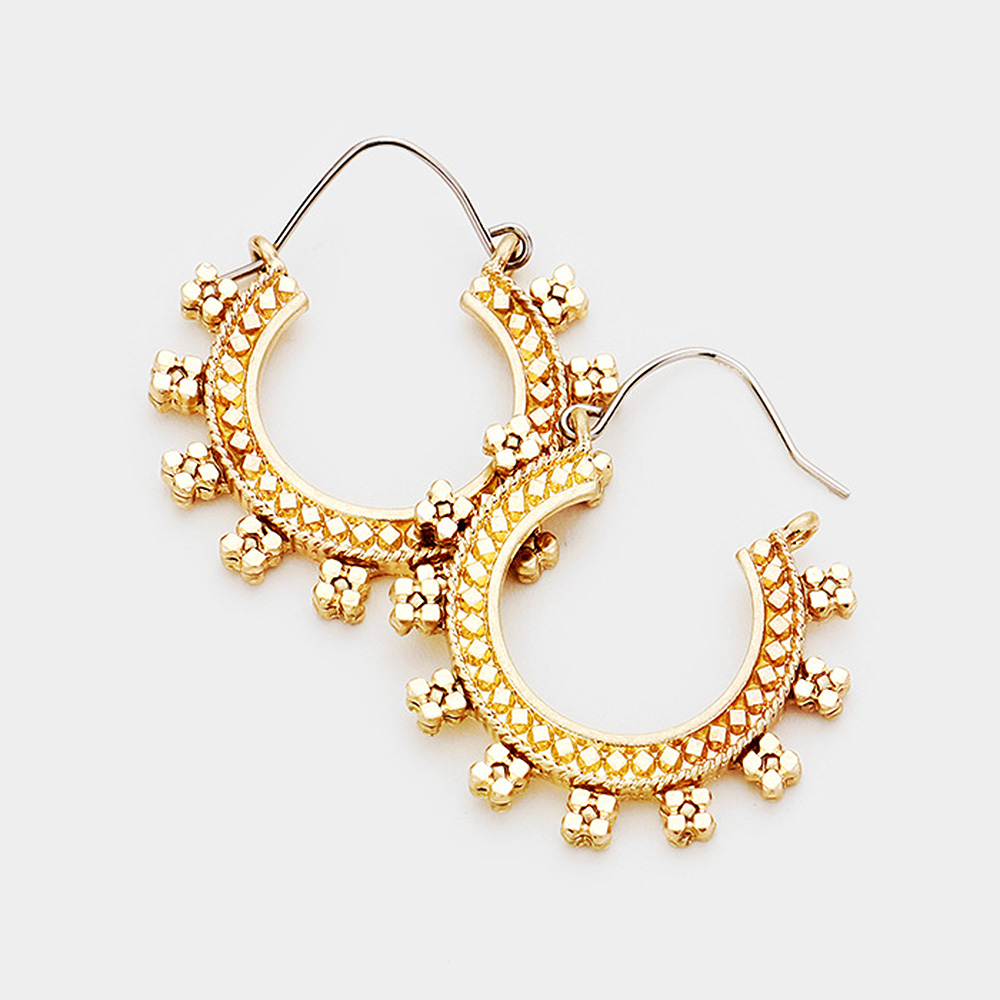 Greek Pattern Detailed Rhinestone Embellished Round Earrings