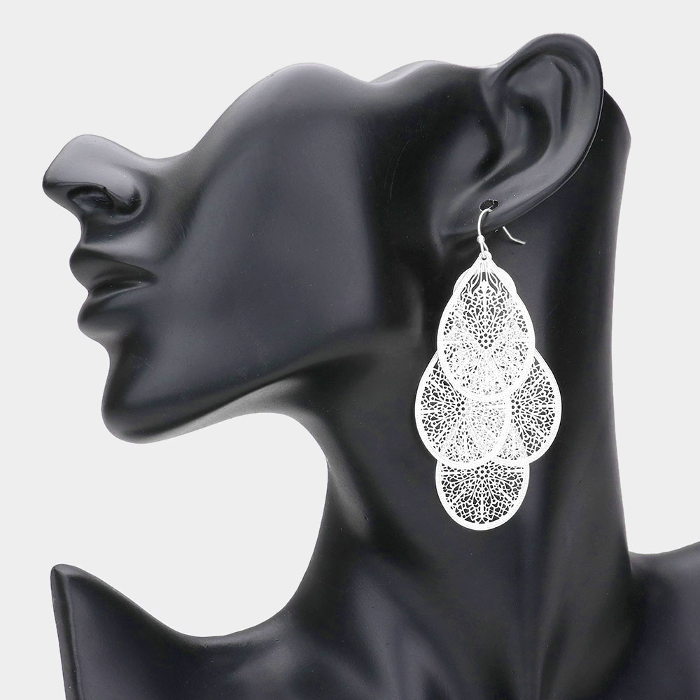 Metal Filigree Teardrop Dangle Earrings
