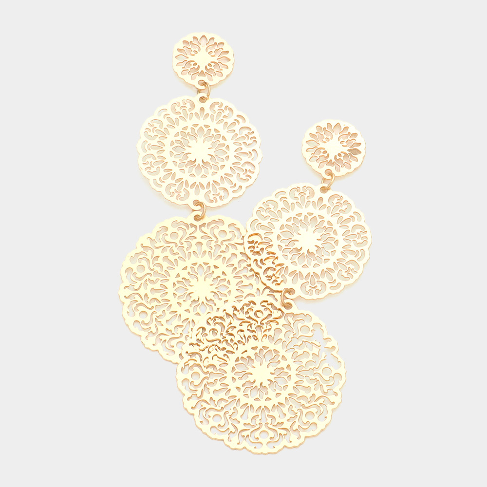Metal Filigree Double Leaves Drop Dangle Earrings