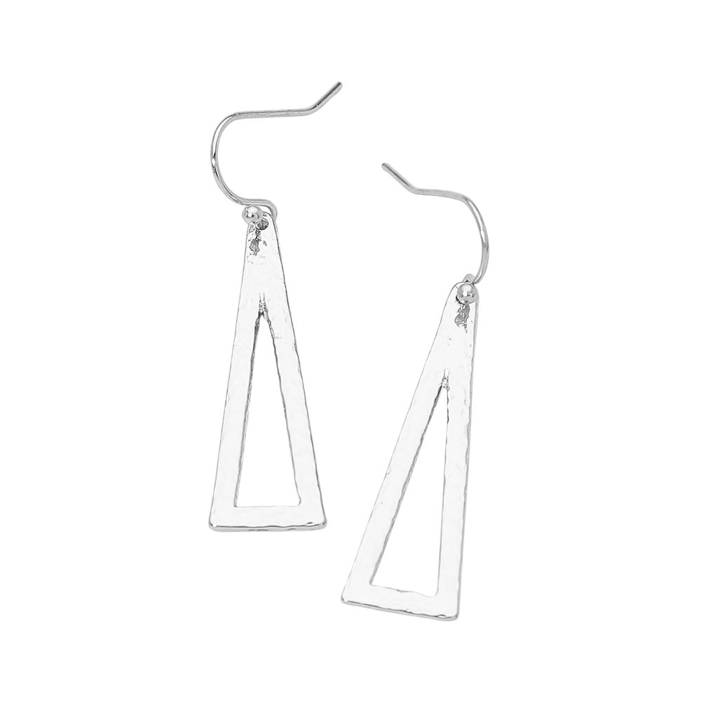 • Modern open triangle drop earrings featuring a sleek geometric silhouette with subtle texture and elegant movement. Designed to add a refined statement to everyday outfits or dressed-up looks, these lightweight earrings pair effortlessly with casual wear, work styles, or evening ensembles.