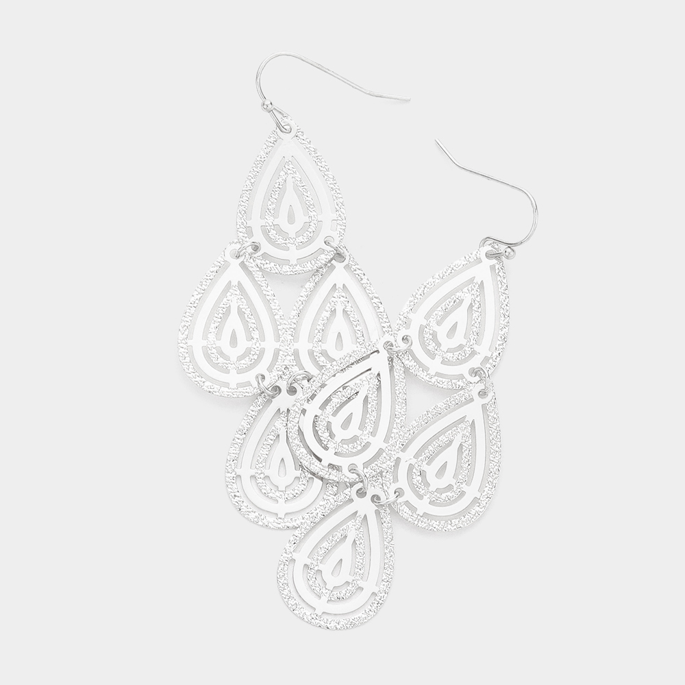 Oversized Glass Stone Embellished Diamond Frame Chandelier Evening Earrings