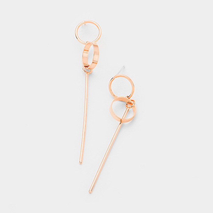 Gold Dipped Geometric Metal Hoop Bar Link Earrings