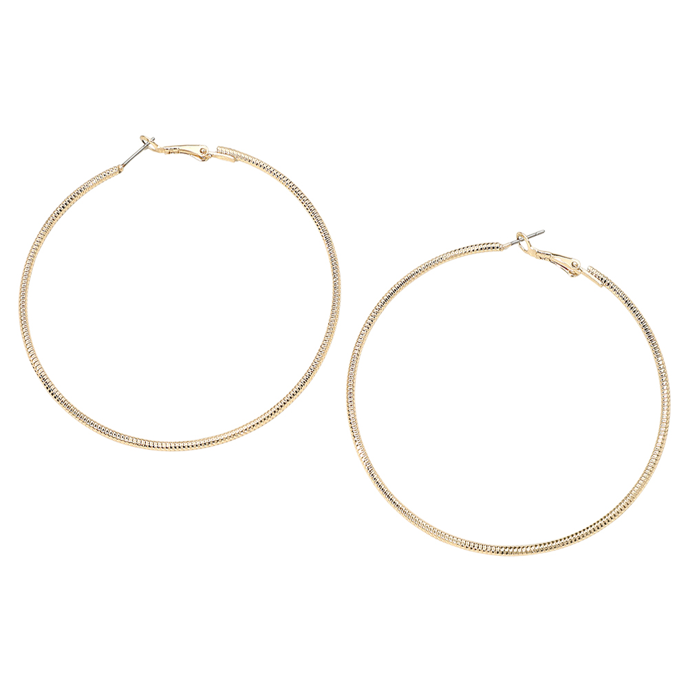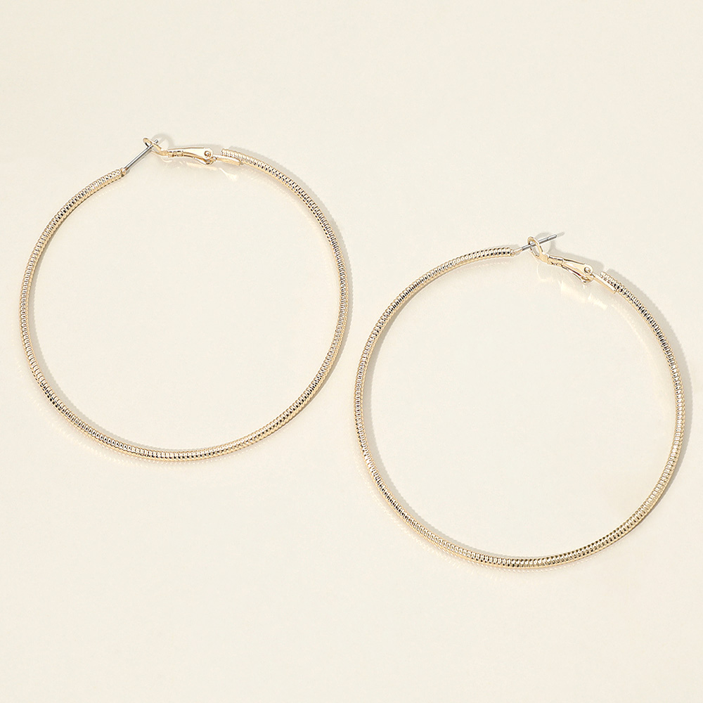 • Oversized hoop earrings featuring a refined textured finish and a slim, lightweight silhouette for comfortable all-day wear. A bold yet versatile accessory that adds modern elegance to casual outfits or enhances evening looks with a polished minimalist style.