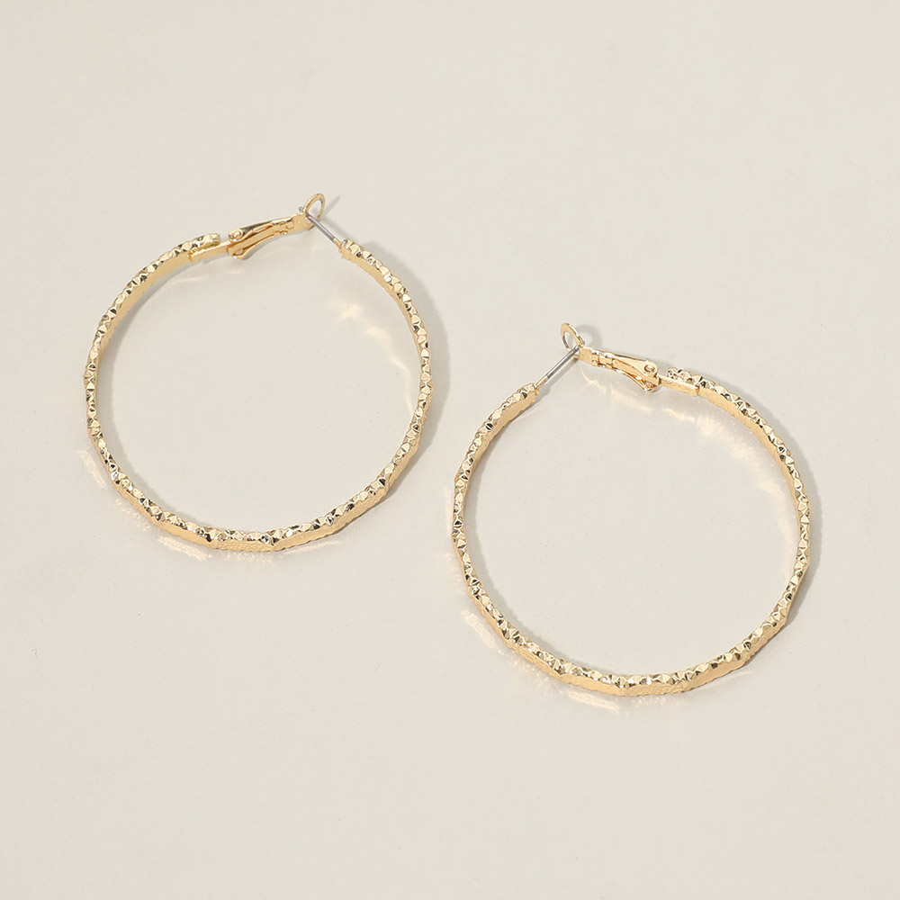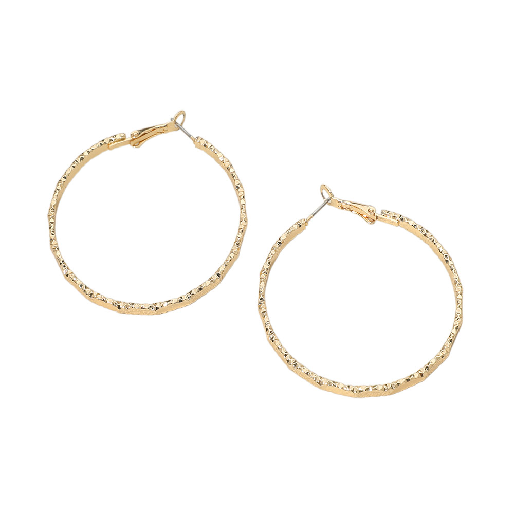 • Stylish medium textured hoop earrings with a hammered-style pattern that adds shine and dimension. Lightweight and comfortable with a secure latch-back closure, perfect for daily wear or dressing up your look with a subtle touch of modern elegance.