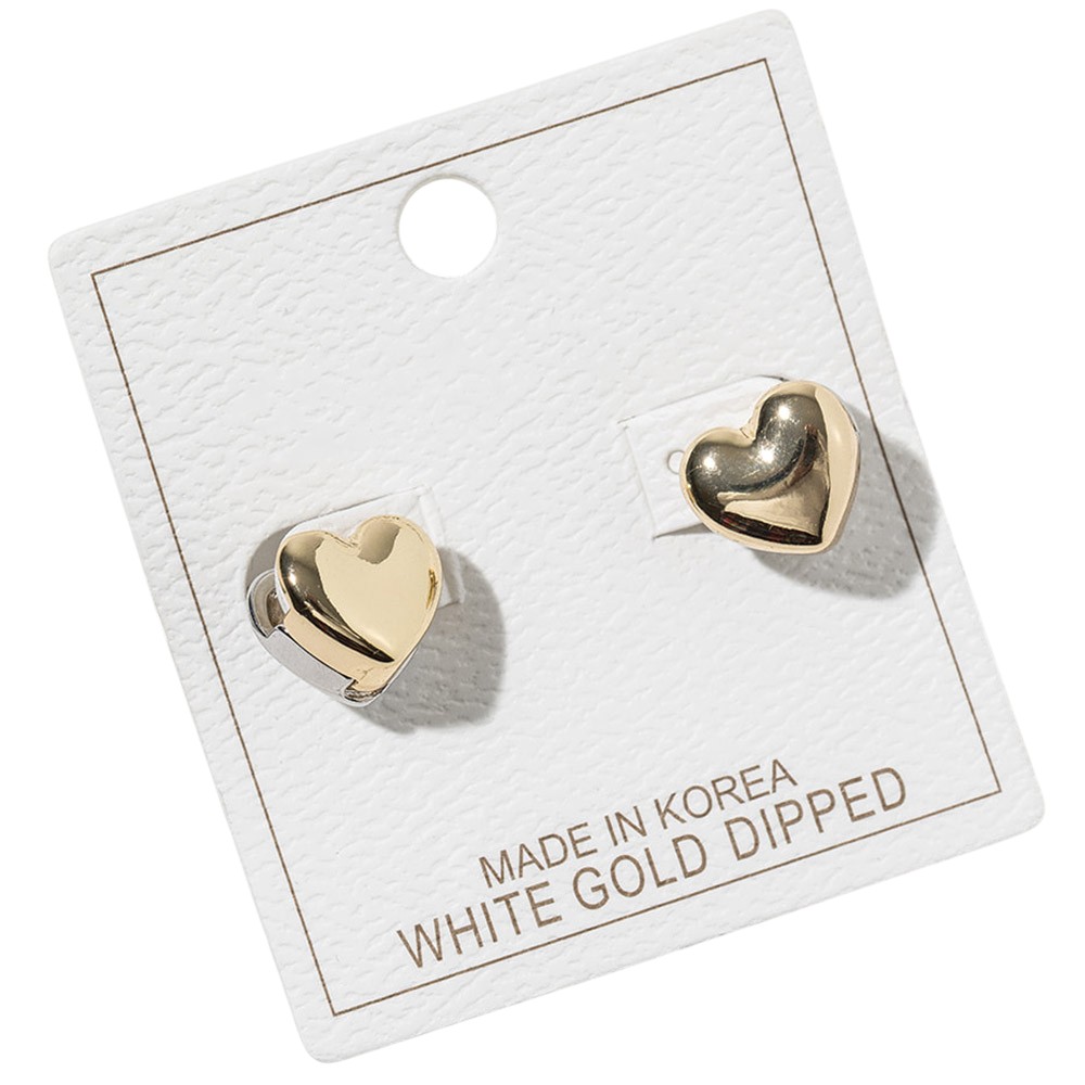 Details • Size : 0.5" X 0.5" • Huggie Back • Classic heart stud earrings designed with a smooth, sculpted shape that adds a polished touch to any jewelry collection. This timeless style works beautifully for everyday wear, romantic gifting, and seasonal assortments, offering versatile appeal that pairs effortlessly with casual looks and elegant outfits alike. • Lead and Nickel Compliant • Made In Korea • Gold Dipped