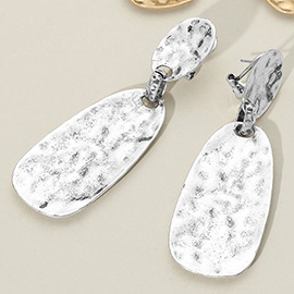 Hammered Brushed Metal Sculptural Plate Drop Earrings