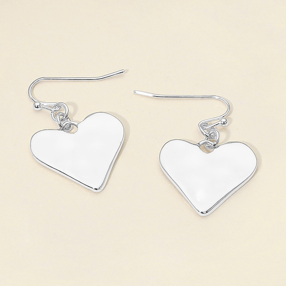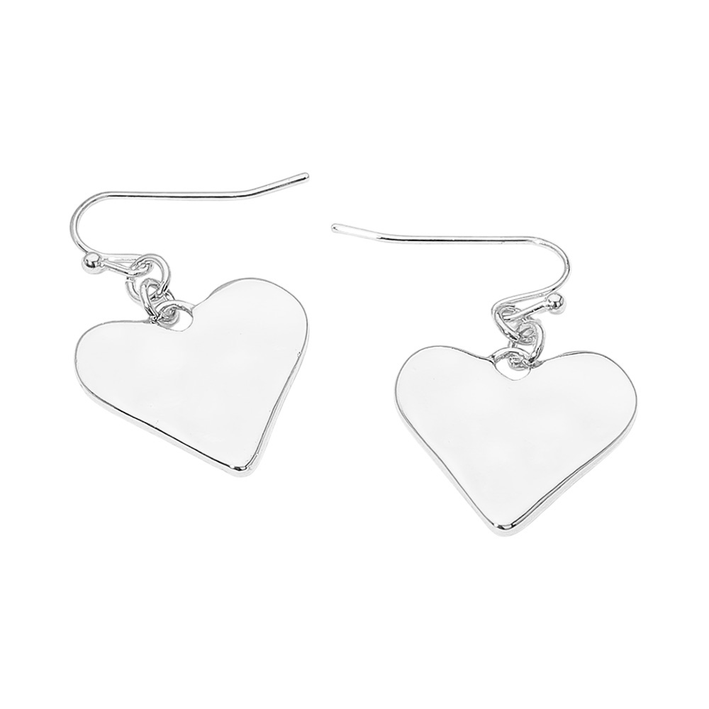 Details • Size : 0.8" X 1.3" • Fish Hook Back • These hammered heart dangle earrings showcase a smooth, reflective finish with a subtly textured surface for a handcrafted charm. Lightweight and romantic, they add a touch of playful elegance to any look, perfect for expressing love and style in both casual and dressy moments. • Lead and Nickel Compliant