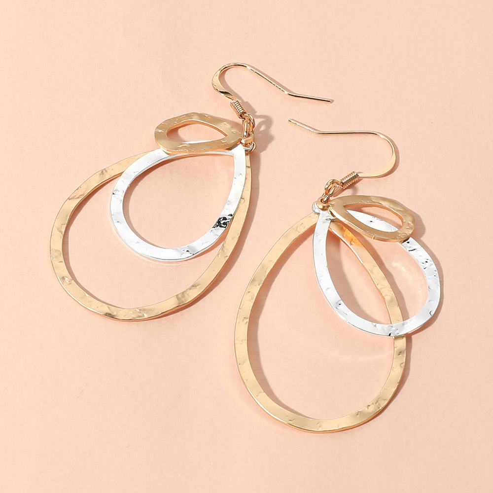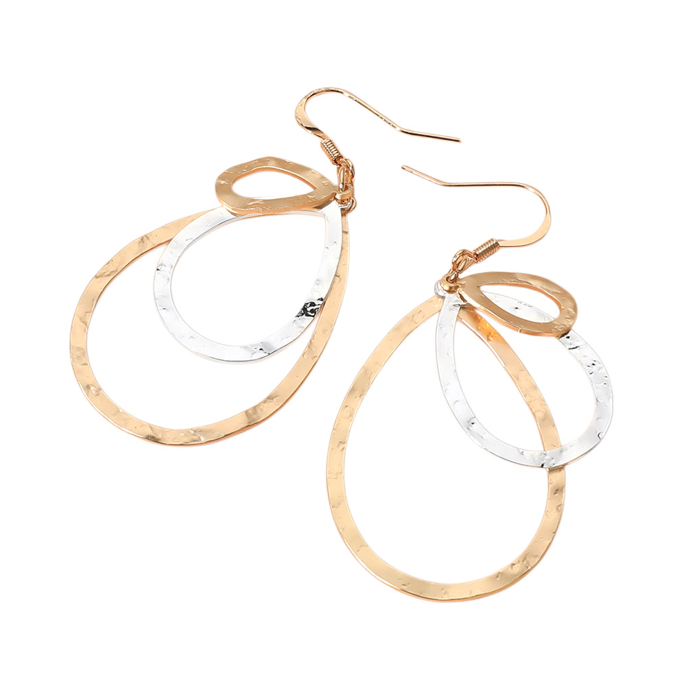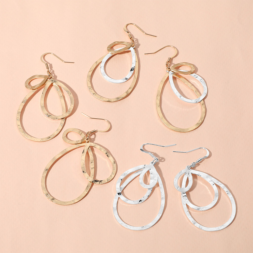 Hammered Metal Triple Open Teardrop Layered Dangle Earrings