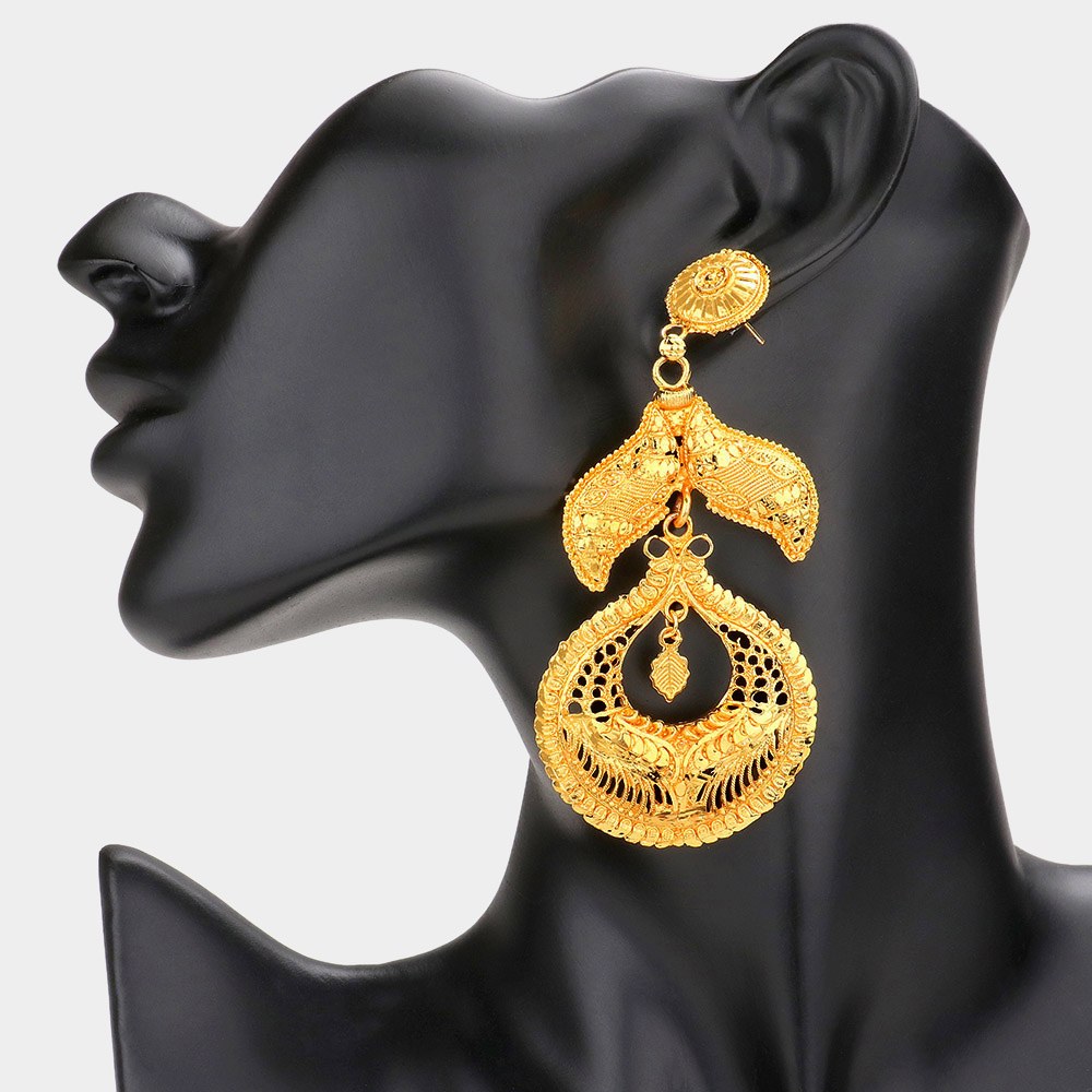 Gold Dipped Metal Cutout Accent CZ Stone Paved Hoop Earrings