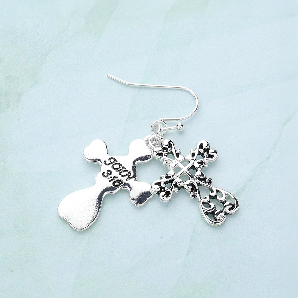 JOHN 3:16 Message Double Metal Cross Dangle Earrings