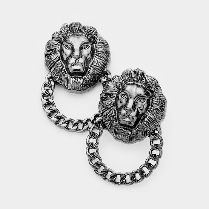 Metal Lion Accented Cutout Triangle Dangle Earrings