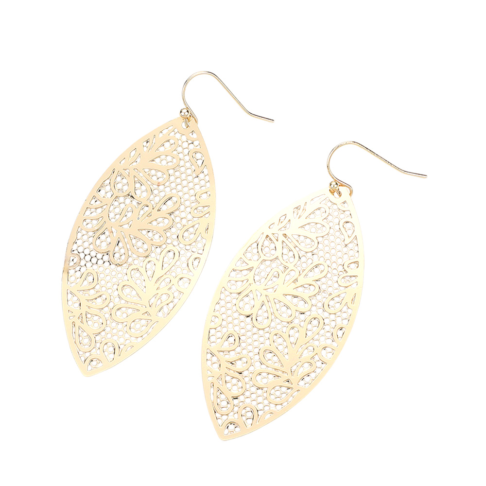 Brass Metal Marquise Filigree Dangle Earrings