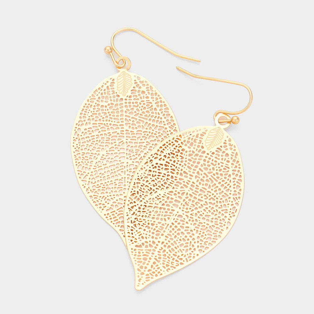 Natural Dipped Filigree Leaf Pendant Long Necklace