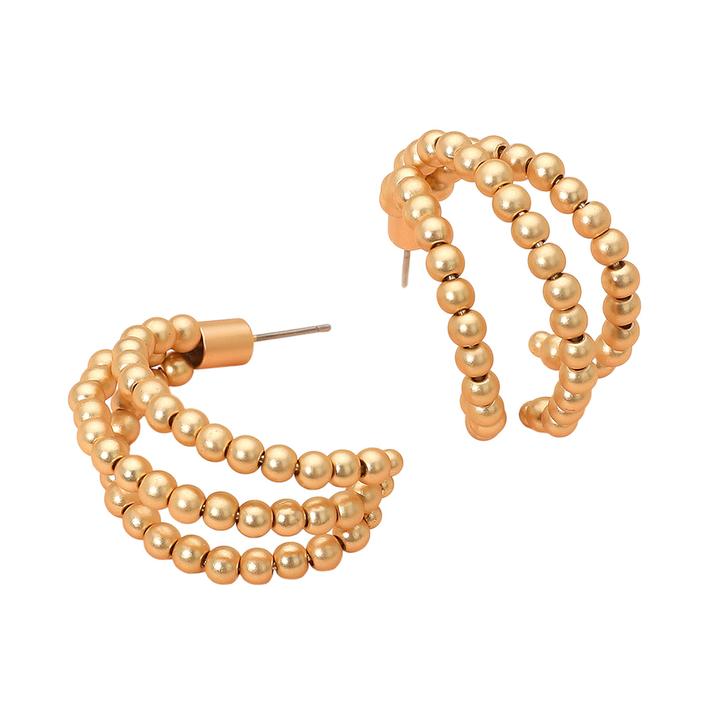 • Make a bold yet elegant statement with these triple beaded hoop earrings. Featuring three layered rows of polished spheres, they offer a contemporary twist on a timeless silhouette. Lightweight and refined, these hoops effortlessly elevate both casual and formal looks.