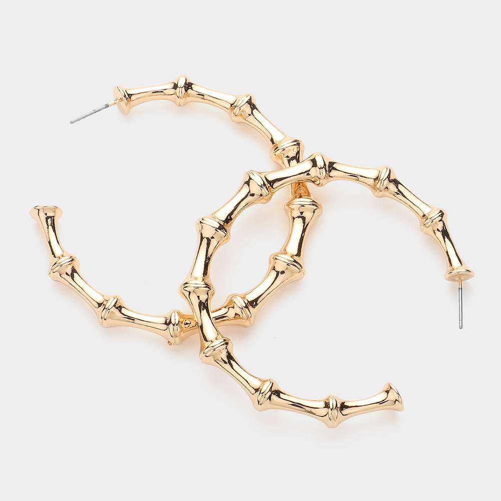 Bold Textured Metal Heart Accent Bamboo Link Statement Necklace