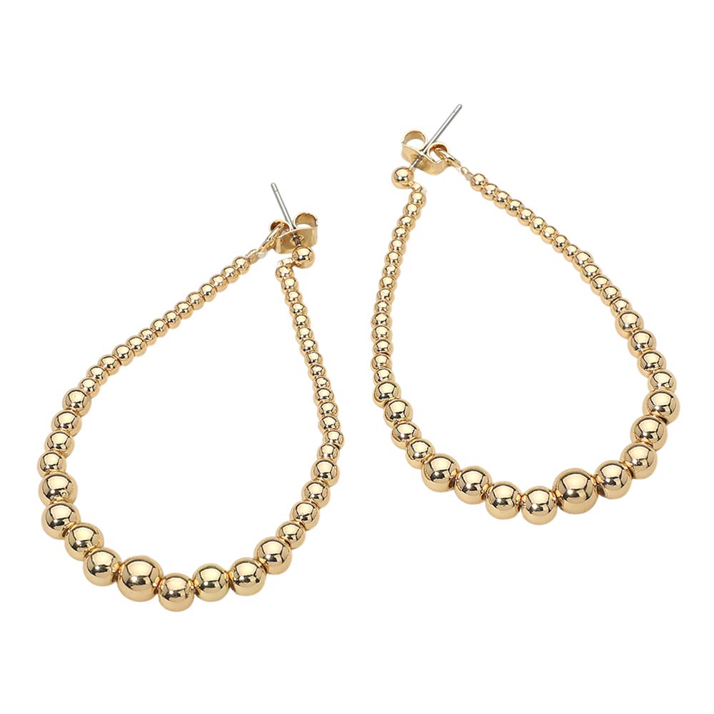 Details • Size : 1.2" X 2.5" • Post Back • Elegant teardrop hoop earrings designed with graduated bead detailing for smooth movement and eye-catching dimension. Lightweight yet statement-worthy, these hoops add a modern touch to casual outfits, office looks, or evening styling, making them a versatile accessory for everyday wear or special occasions. • Lead and Nickel Compliant