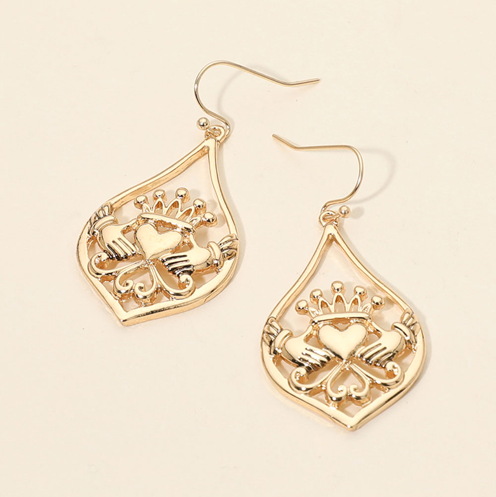 Metal Claddagh Heart Crown Motif Dangle Earrings Metal Claddagh Heart Crown Motif Dangle Earrings Metal Claddagh Heart Crown Motif Dangle Earrings