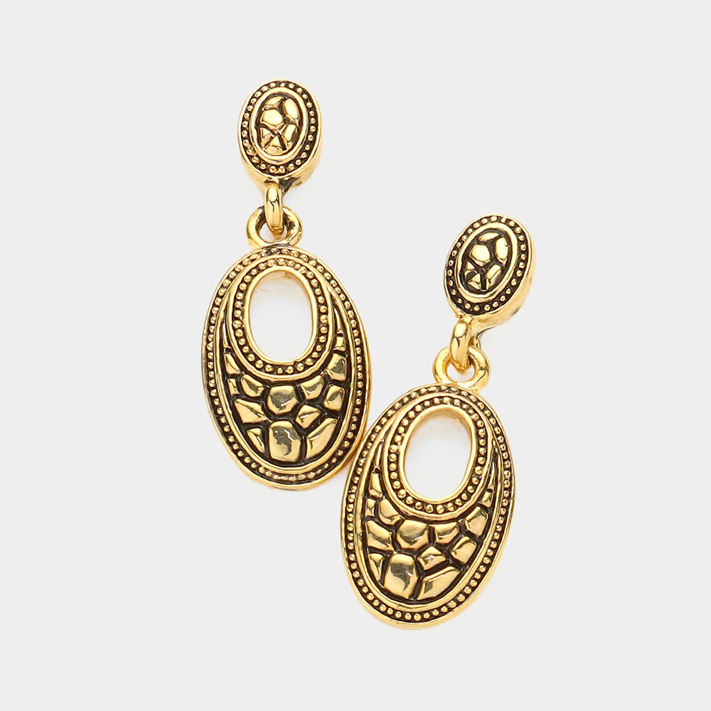 Rhinestone Embellished Metal Elephant Dangle Earrings