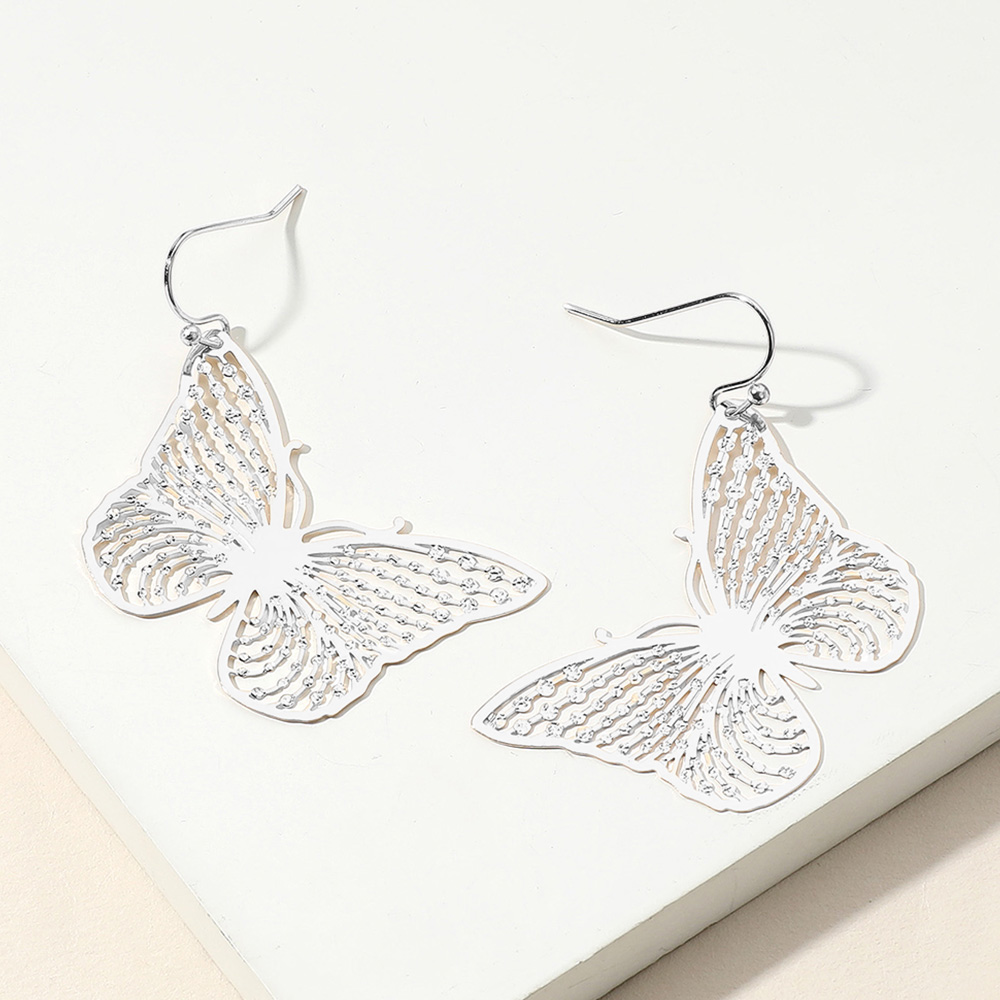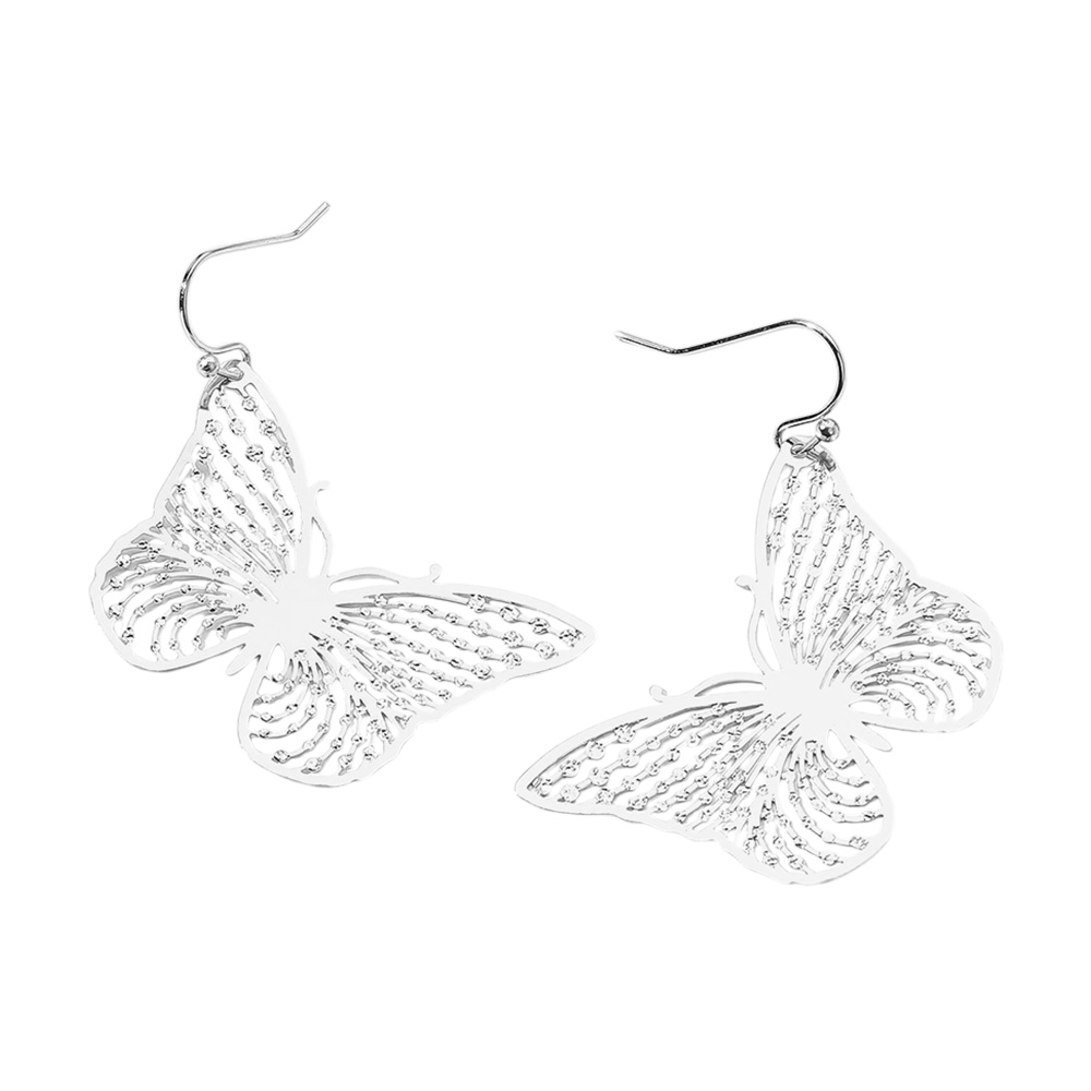Details • Size : 1.5" X 1.8" • Fish Hook Back • Add a touch of elegance and grace with these butterfly filigree drop earrings. Featuring intricate wing detailing and a lightweight design, they exude sophistication and charm. Perfect for enhancing everyday outfits or completing a chic evening look with effortless femininity. • Lead and Nickel Compliant • Brass