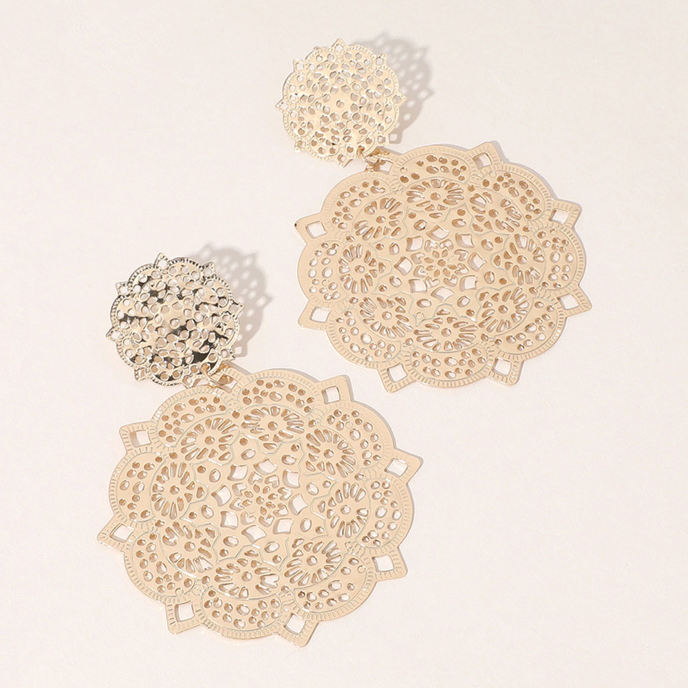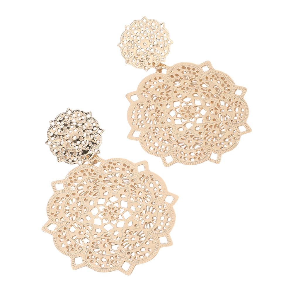 Triple Round Brass Metal Filigree Link Dropdown Dangle Earrings