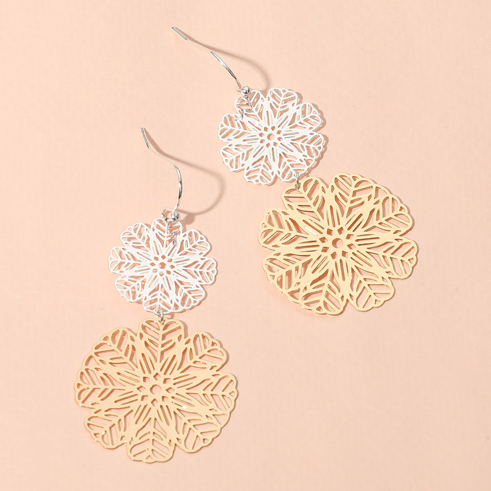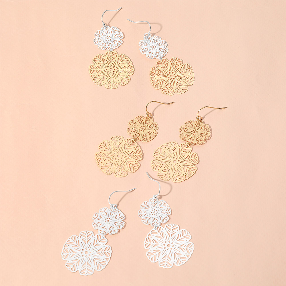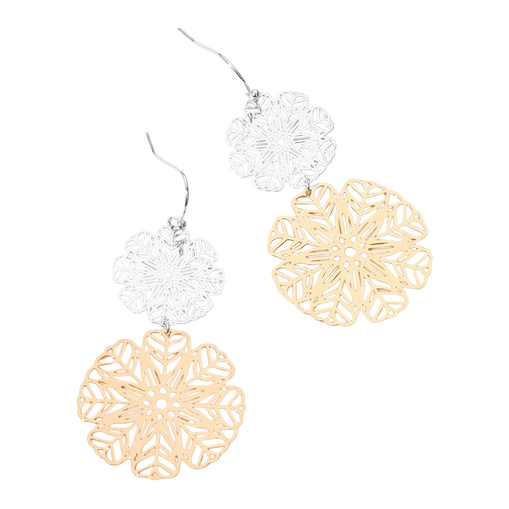 Metal Filigree Double Leaves Drop Dangle Earrings