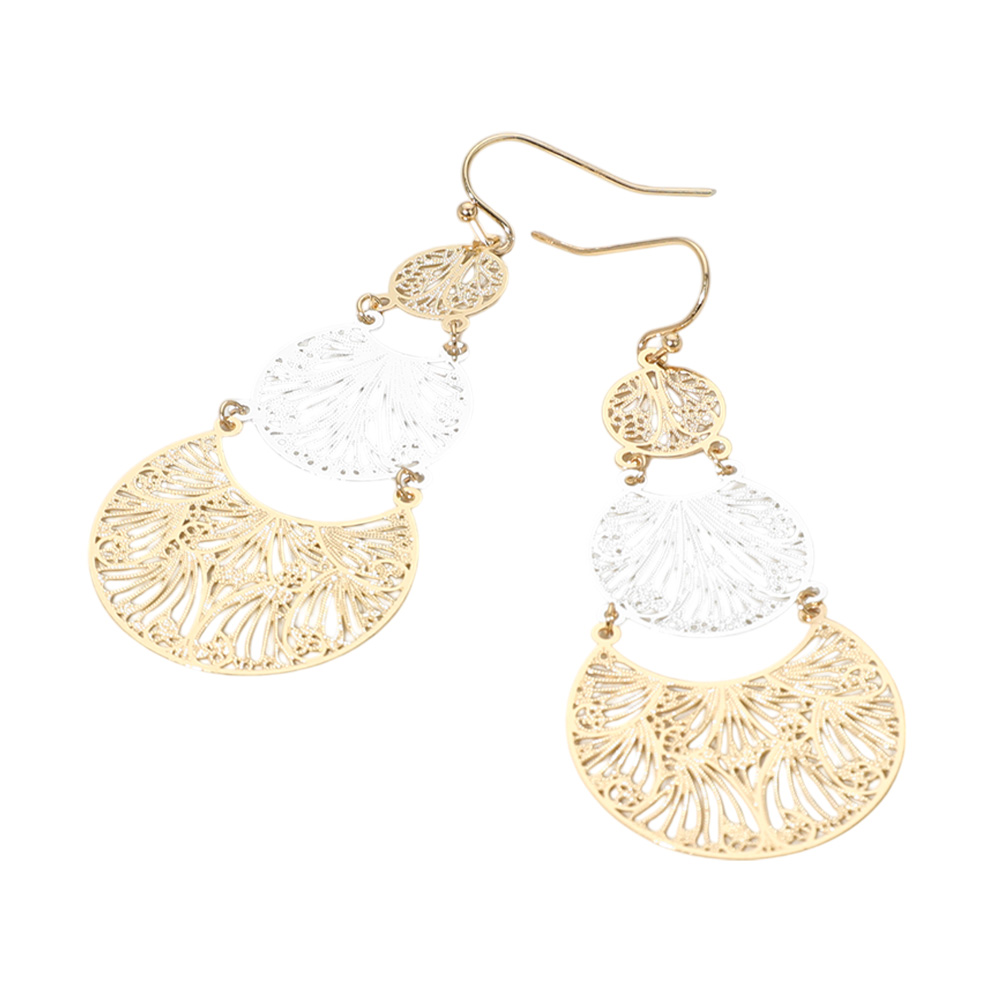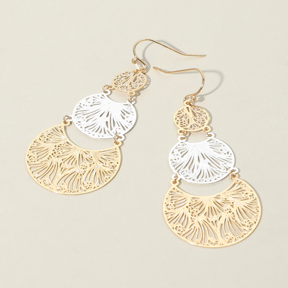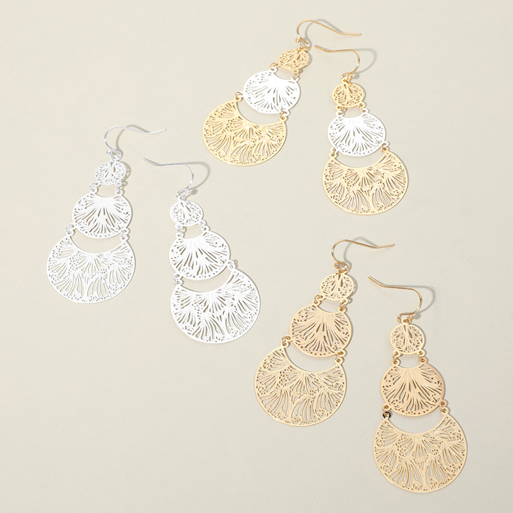 Metal Filigree Double Leaves Drop Dangle Earrings