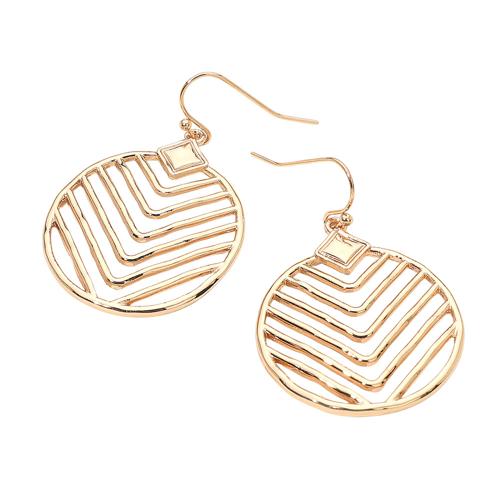 Metal Geometric Chevron Line Disc Dangle Earrings Metal Geometric Chevron Line Disc Dangle Earrings