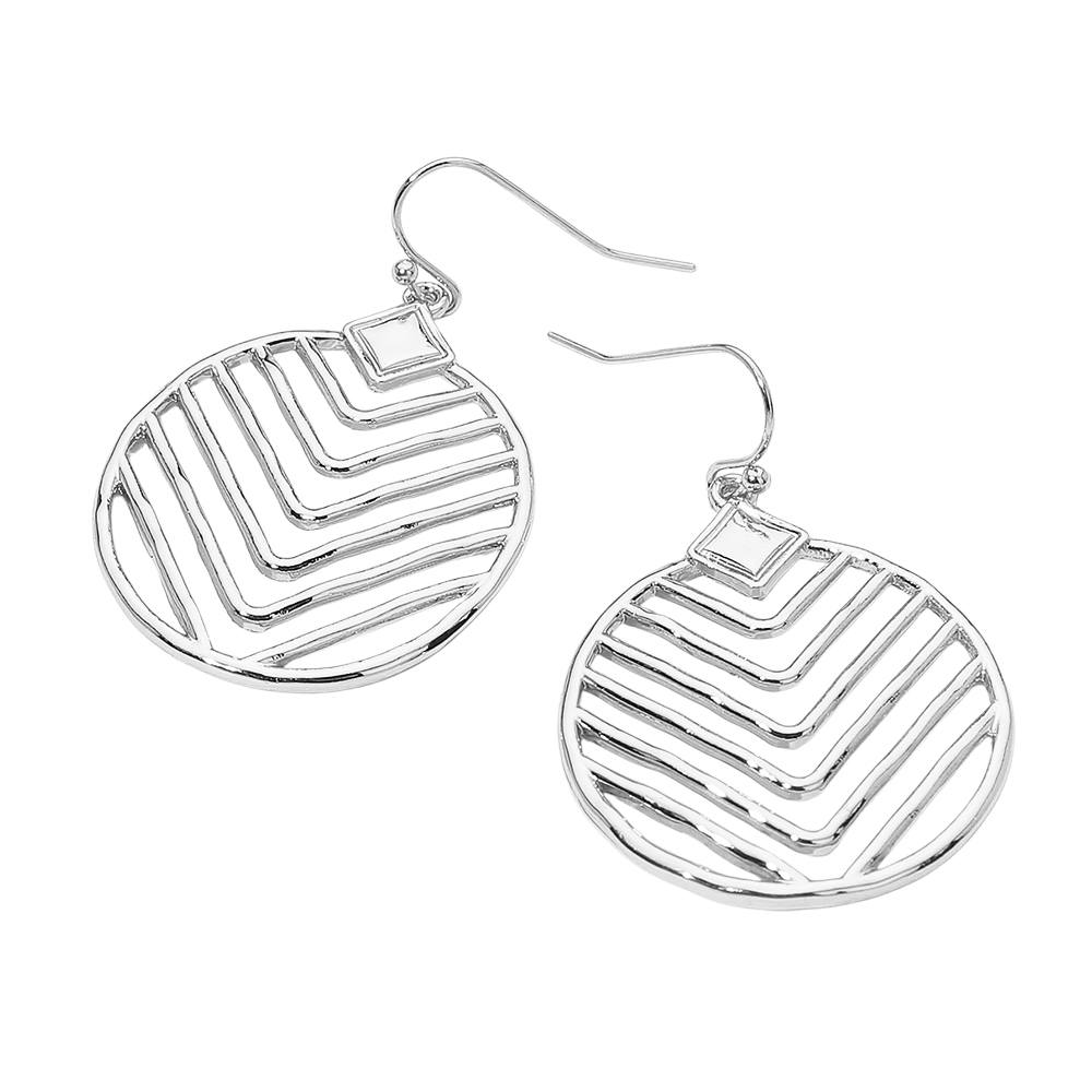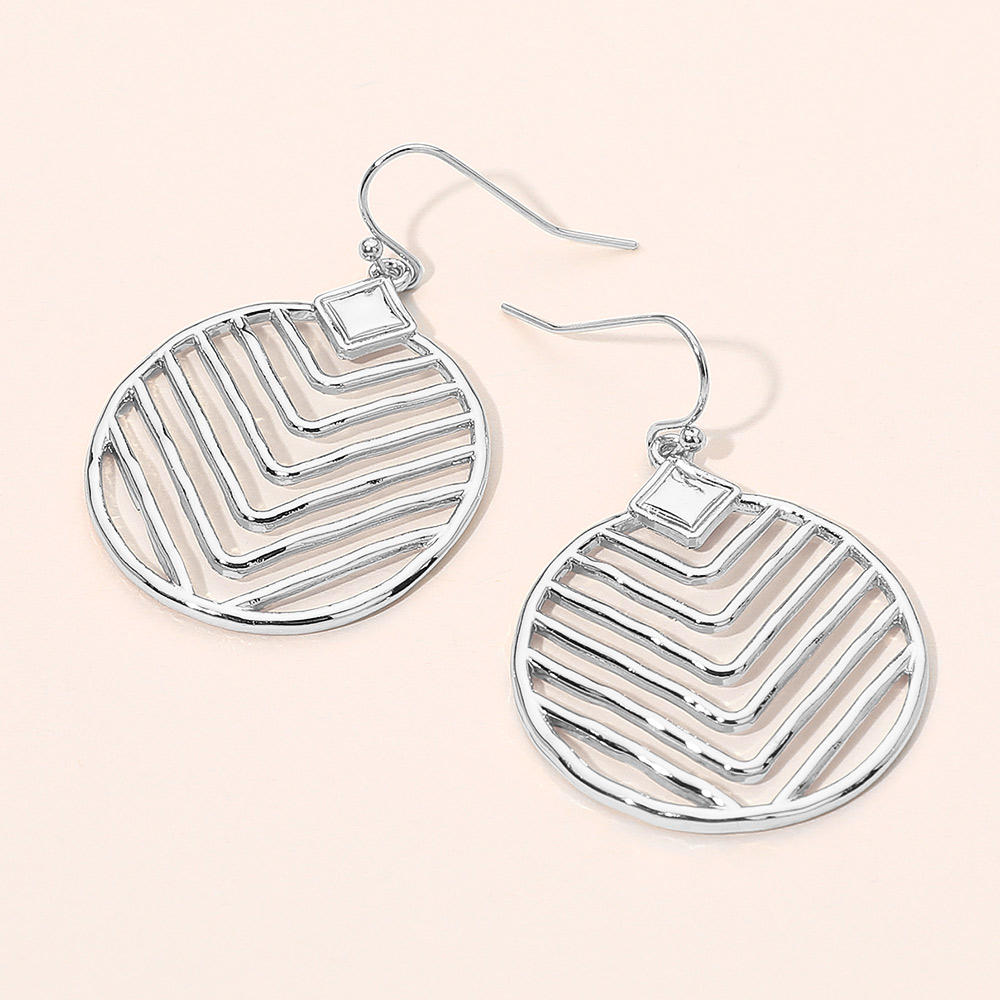Details • Size : 1.2" X 1.8" • Fish Hook Back • Sleek round drops with layered line detailing for a bold yet refined look. Lightweight and eye-catching, these modern earrings move beautifully with every step, perfect for everyday style, office wear, date nights, and special occasions. • Lead and Nickel Compliant