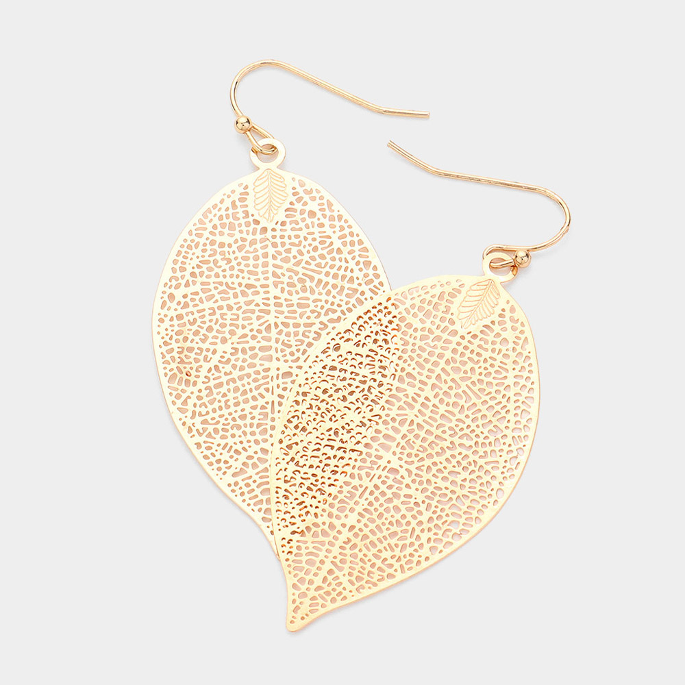 Natural Dipped Filigree Leaf Pendant Long Necklace