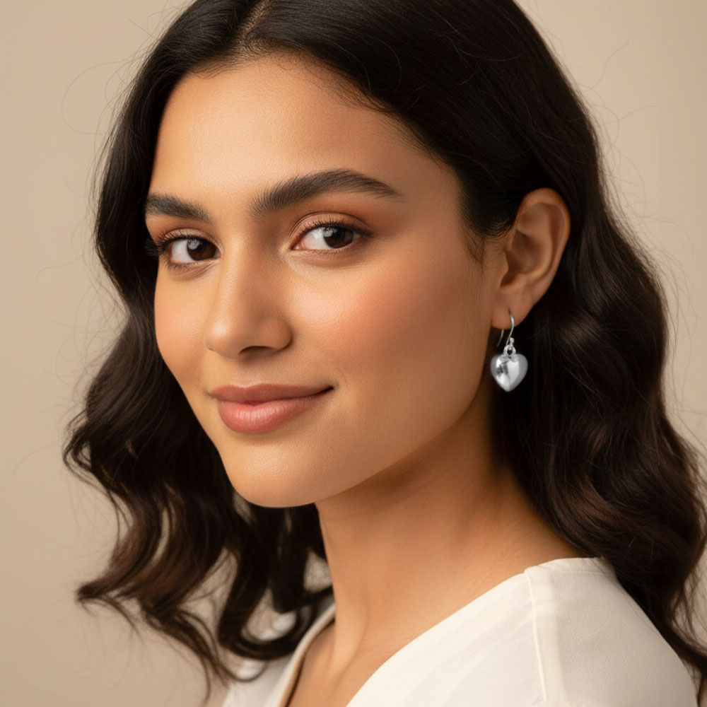 • Featuring softly contoured heart charms suspended from elegant hooks for gentle movement and everyday charm. A versatile accent perfect for casual looks or special moments, offering a timeless silhouette that pairs beautifully with any outfit.