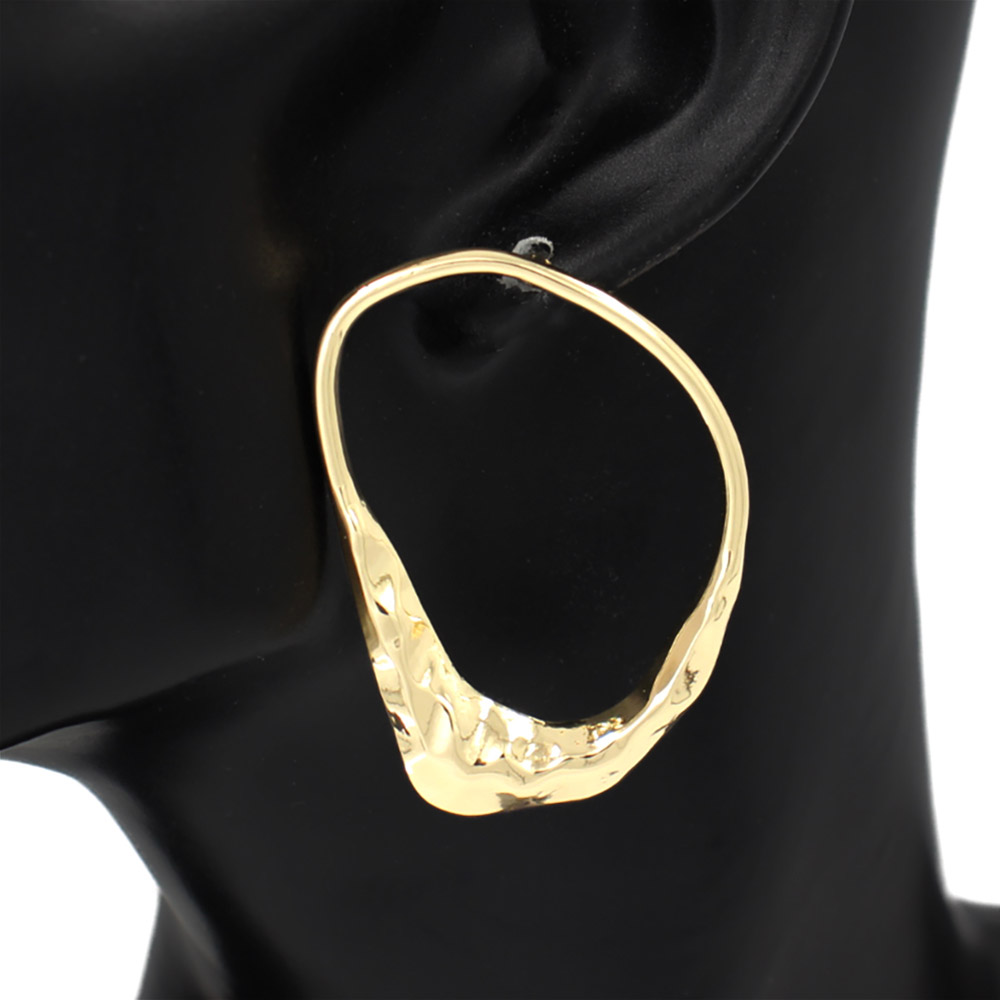 Details • Size : 1.25" X 2" • Post Back • These sculpted loop earrings feature an organically shaped silhouette that adds a bold contemporary touch to any look. Their fluid, artistic design creates a striking statement, offering effortless elegance for both polished and everyday styling. • Lead and Nickel Compliant