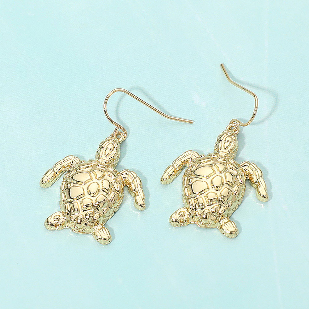 Details • Size : 1" X 1.5" • Fish Hook Back • Charming sea turtle drop earrings feature a detailed sculpted design that brings coastal inspiration to everyday style. Lightweight and easy to wear, they add playful movement and a unique accent to casual outfits or dressier looks for a standout finish. • Lead and Nickel Compliant