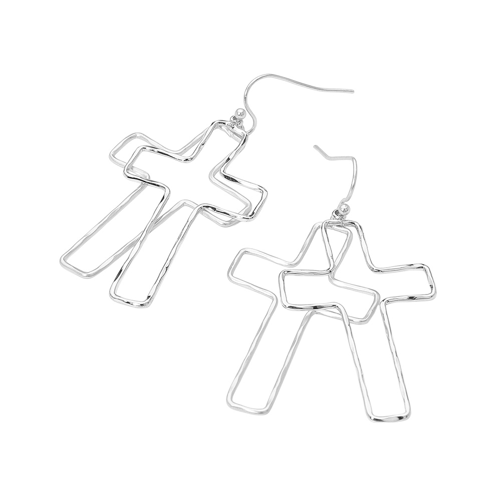 Metal Wire Open Double Cross Dangle Earrings Metal Wire Open Double Cross Dangle Earrings