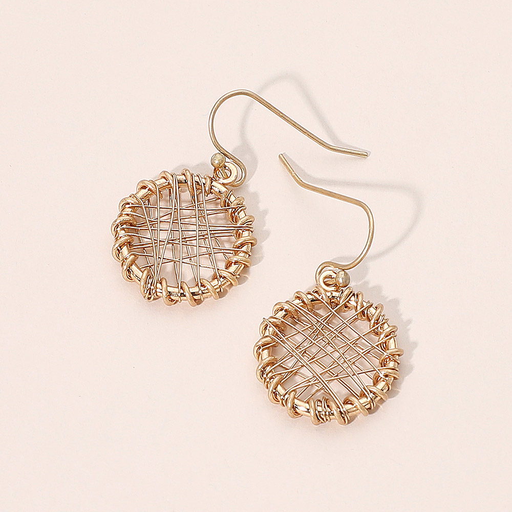 Metal Wire Wrapped Round Drop Dangle Earrings