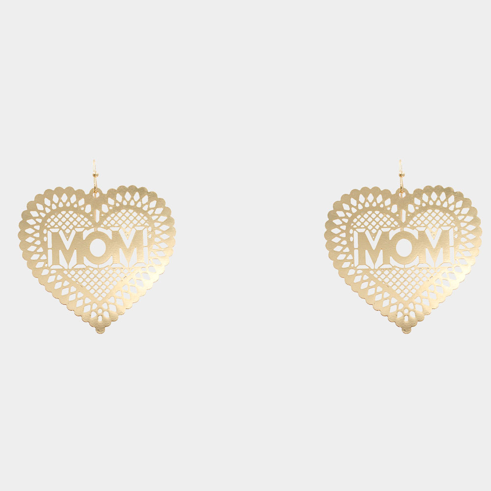 MOM Message Colored Brass Metal Heart Dangle Earrings